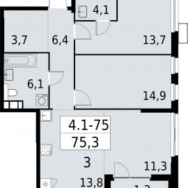 Просторная трехкомнатная квартира с европланировкой и отделкой в ЖК "Южные сады" на 14 этаже. Общая площадь: 75.3 кв.м., жилая: 39.9 кв.м., суммарная площадь гостиной-столовой с кухонной зоной: 25.1 кв.м. Европланировка, кухня-гостиная - идеальный вариант для тех, кто любит часто...