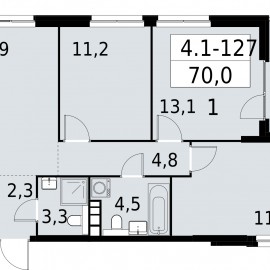 Просторная трехкомнатная квартира с отделкой в ЖК "Южные сады" на 11 этаже. Общая площадь: 63.2 кв.м. Высота потолков 2.95 м. Дом монолитный, черырехподъездный, переменной этажности, от 11 до 30 этажей. Квартира находится в 1-й секции высотой 11 этажей в корпусе 4.1.2. На этаже 6 квартир....