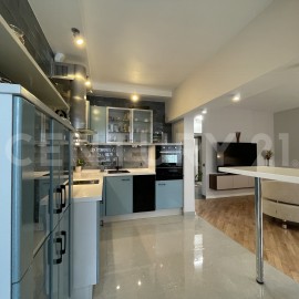 Id 382715. Продается прекрасная 3-комнатная квартира с новым качественным евроремонтом, укомплектованная новой мебелью и техникой, которые остаются Покупателю. Больше фото и видео по запросу! Кухня, санузлы в керамограните, на кухне столешница из искусственного камня, а по...