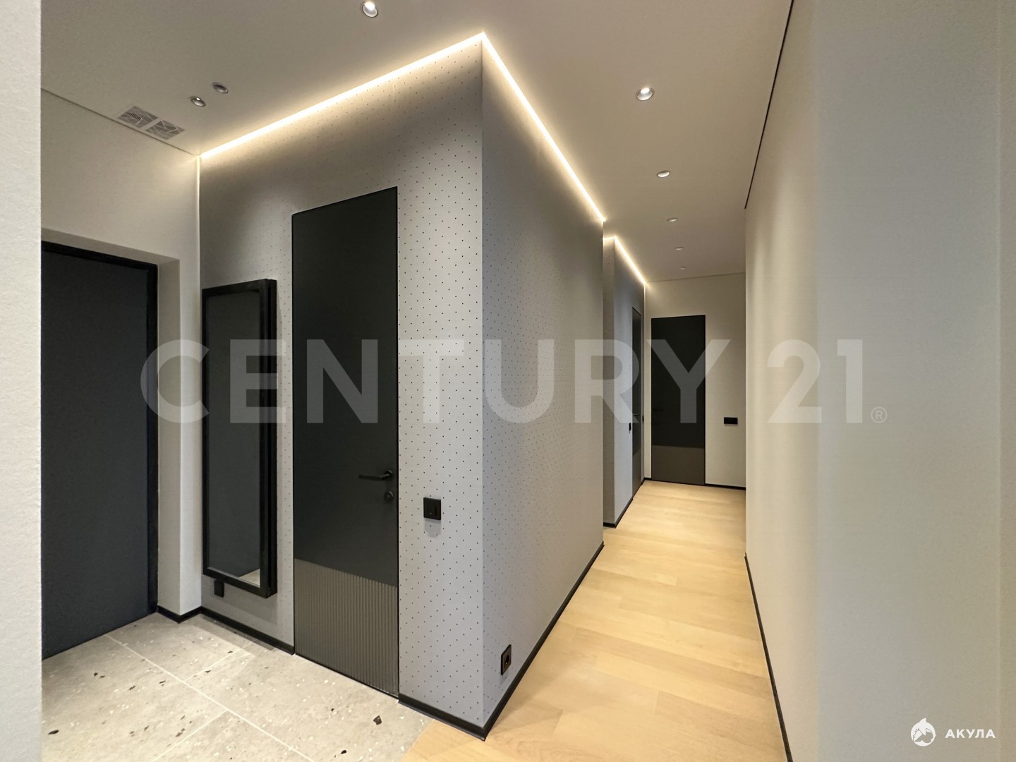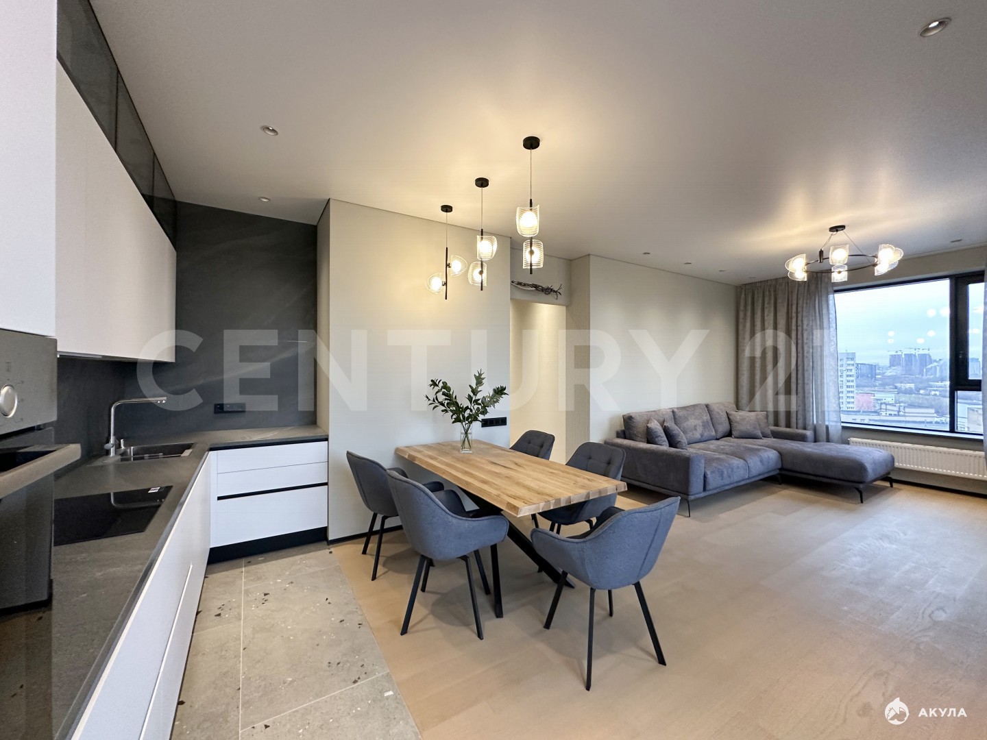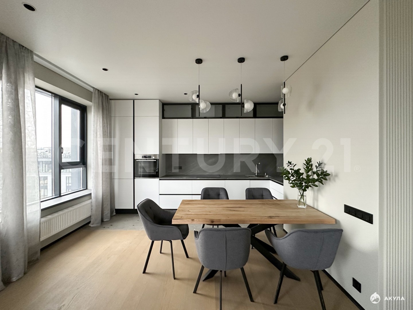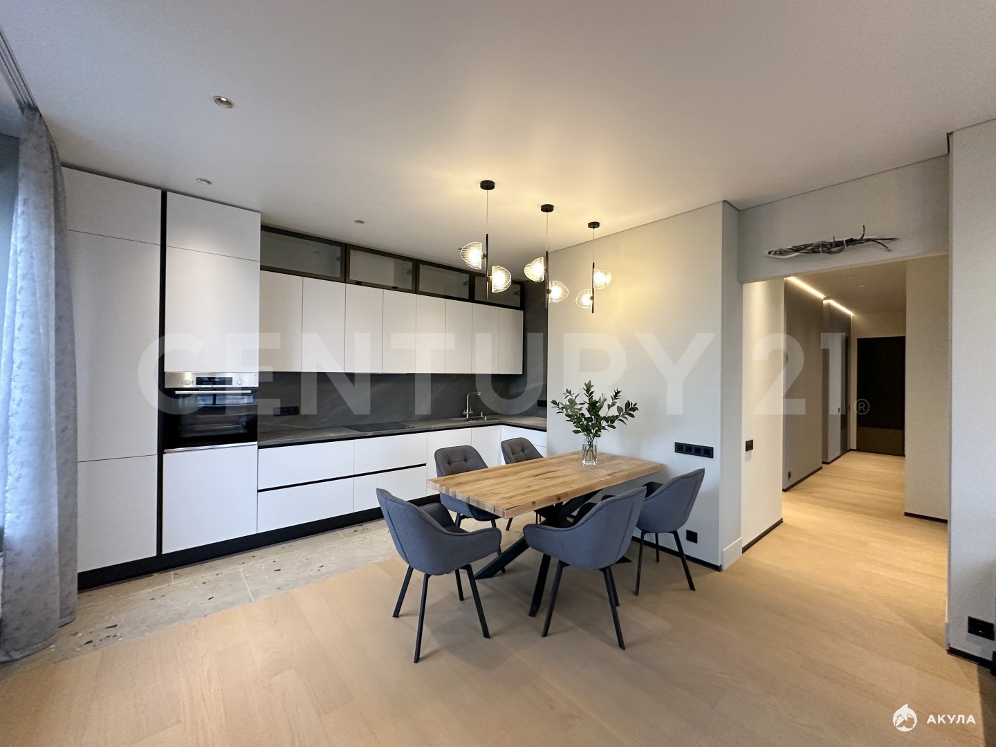 Особенности интерьера:грамотное зонированиекачественные материалы отделкишумоизоляция во всех комнатахпродуманное до мелочей освещениевстроенная кухня премиум-класса с техникой ведущих производителей (Bosch, Weissgauff)гардеробная с умной системой для сушки бельятёплый пол во всех зонах с керамогранитом (прихожая, кухня, санузлы)полноценная бойлерная система на всю квартируавтоматические электрошторы (голосовое управление)