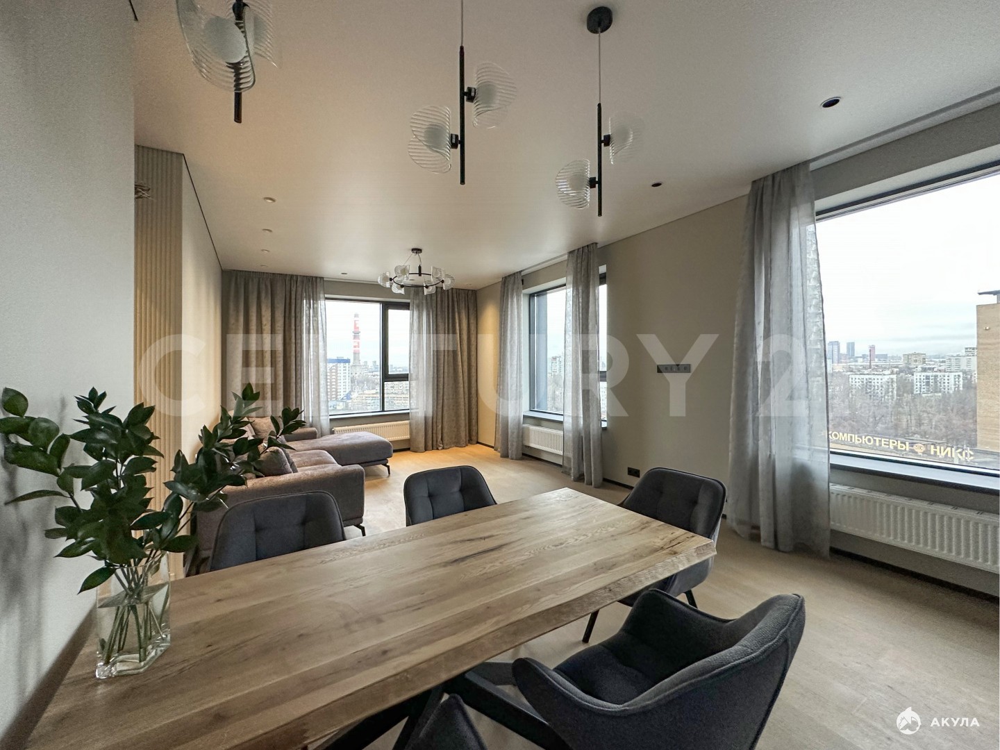 Удачное угловое расположение квартиры, 6 больших окон, низкие подоконники, много света; потолки 2, 95. Завораживающий открытый вид на Останкинскую башню, мегаполис и ухоженную территорию комплекса; отсутствие эффекта "окна в окна".