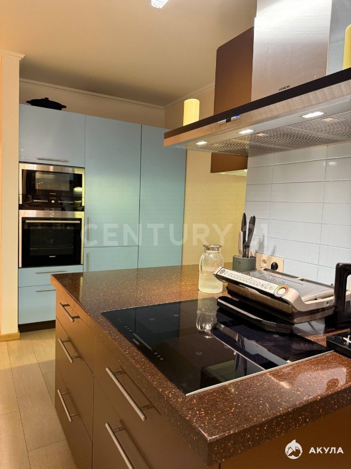 Продается просторная и светлая квартира с качественным ремонтом и продуманной инженерией. Уникальность планировки в угловом расположении подъезда — квартира граничит с соседями только по одной стене, что обеспечивает максимальную изолированность и тишину.Планировка: 2 изолированные спальни, гостиная, совмещенная с кухней, 2 санузла.Ремонт и отделка: Стены выровнены и оклеены текстильными обоями, полы — итальянский керамогранит и паркетная доска из беленого дуба, натяжной потолок в одной из зон.Инженерия и климат-контроль:Приточно-вытяжная вентиляция Electrolux с рекуперацией и фильтрацией (свежий воздух круглый год без открывания окон).Теплый пол в зоне кухни-гостиной и на лоджии.Современные биметаллические радиаторы.Три кондиционера.Кухня: Встроенная итальянская кухня с камняной столешницей. Вся техника Siemens (холодильник, духовой шкаф, варочная панель, посудомоечная машина, вытяжка, СВЧ).Электрика: Медная проводка, розетки Schneider, УЗО, выделенные линии для мощной техники.Остекление: Двухкамерные стеклопакеты. Лоджия утеплена и остеклена, в одной из секций установлен рекуператор.