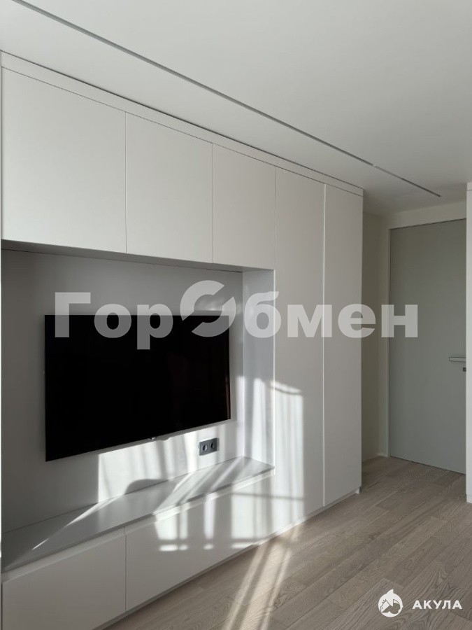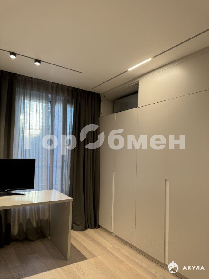 Встроенная мебель в комнатах, кухне, санузлах, изготовлена по индивидуальному дизайну. Большое количество шкафов и мест хранения.