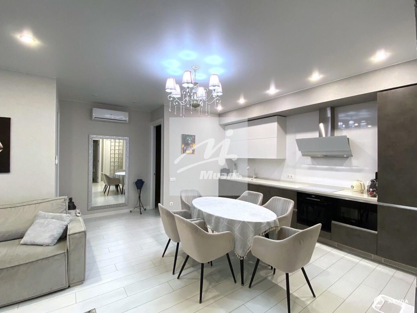 — полностью меблированная и оснащенная встроенной бытовой техникой кухня-гостиная