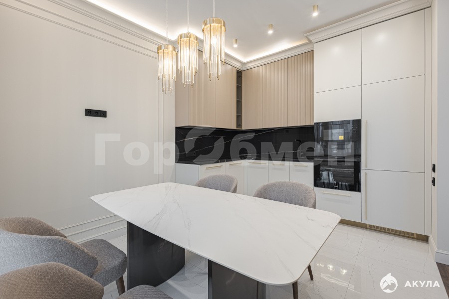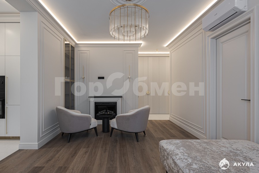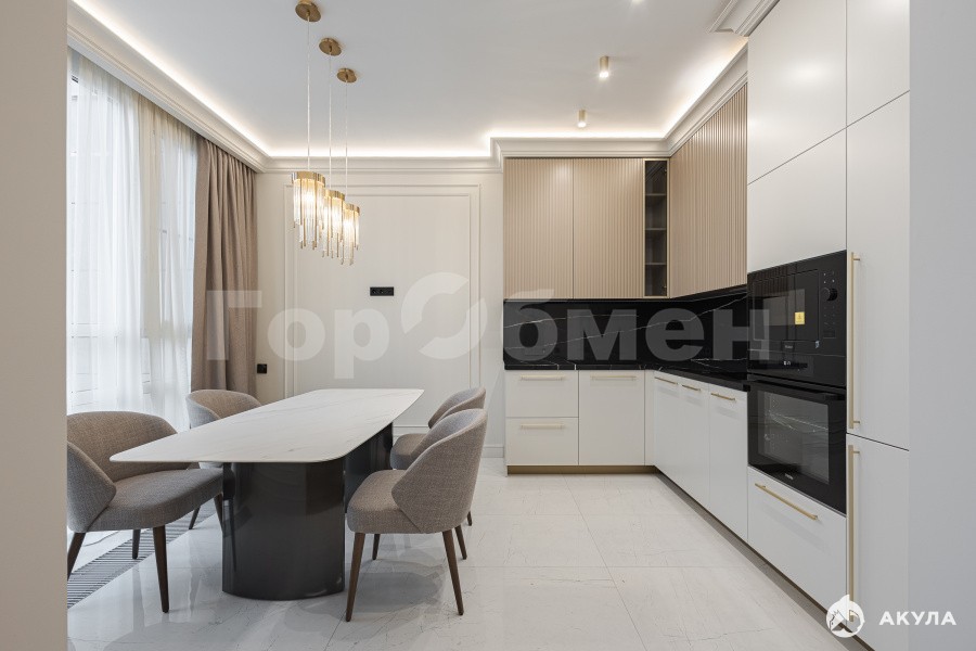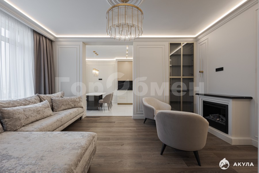 В квартире выполнена качественная отделка с использованием премиальных материалов, элементы декора.