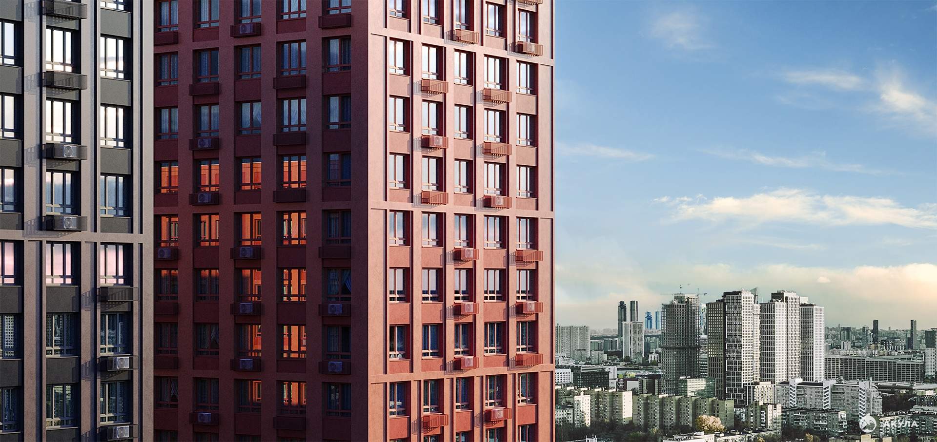 Разновысотные здания придают динамику архитектуре и выделяют жилой комплекс среди другой застройки. В концепции проекта используются вентилируемые фасады с металлическими панелями и декоративной штукатуркой. Каждая секция имеет свой характер и цветовое решение. Покупателям предлагаются лоты с увеличенным остеклением и несколькими видами балконов.
