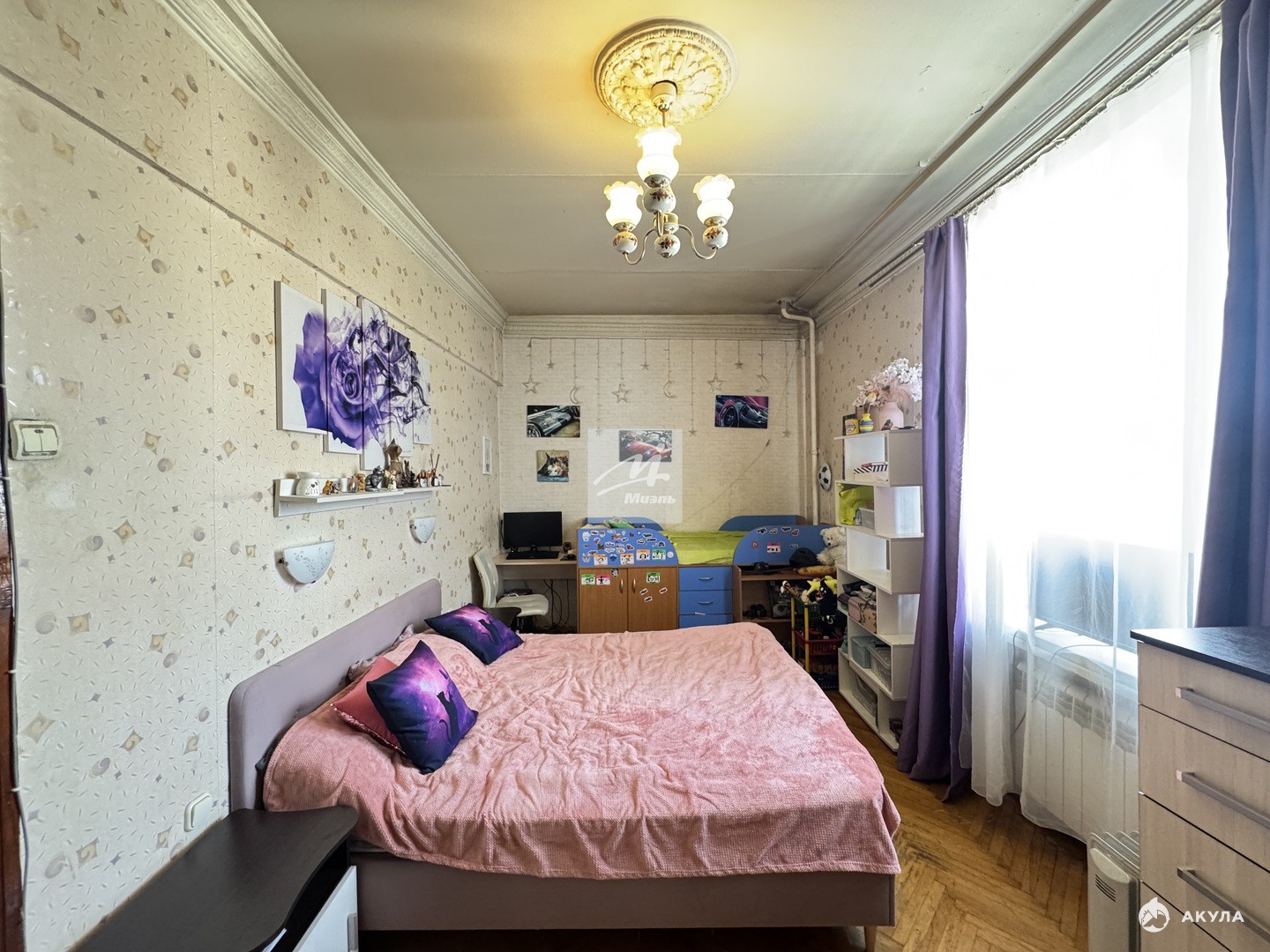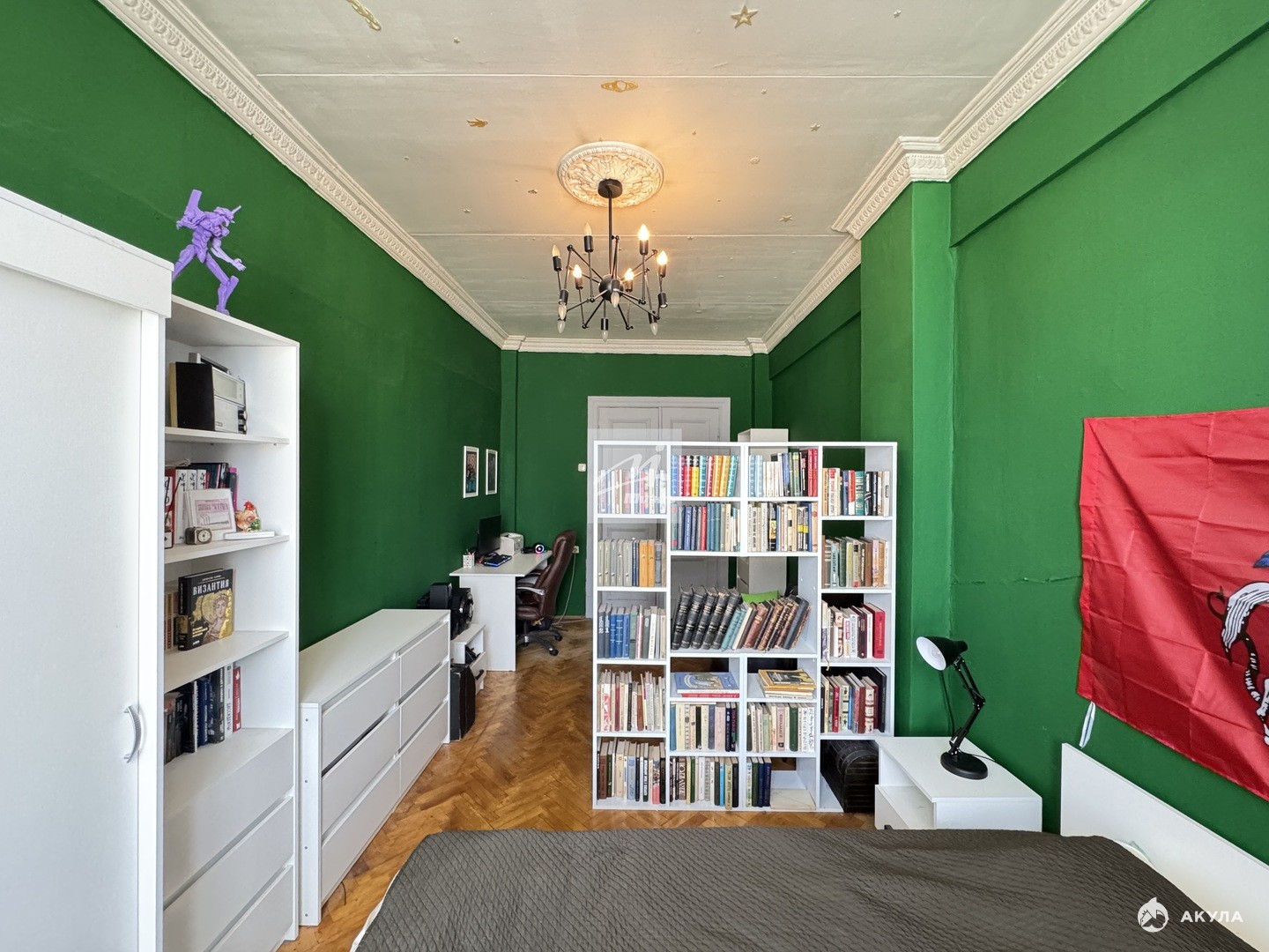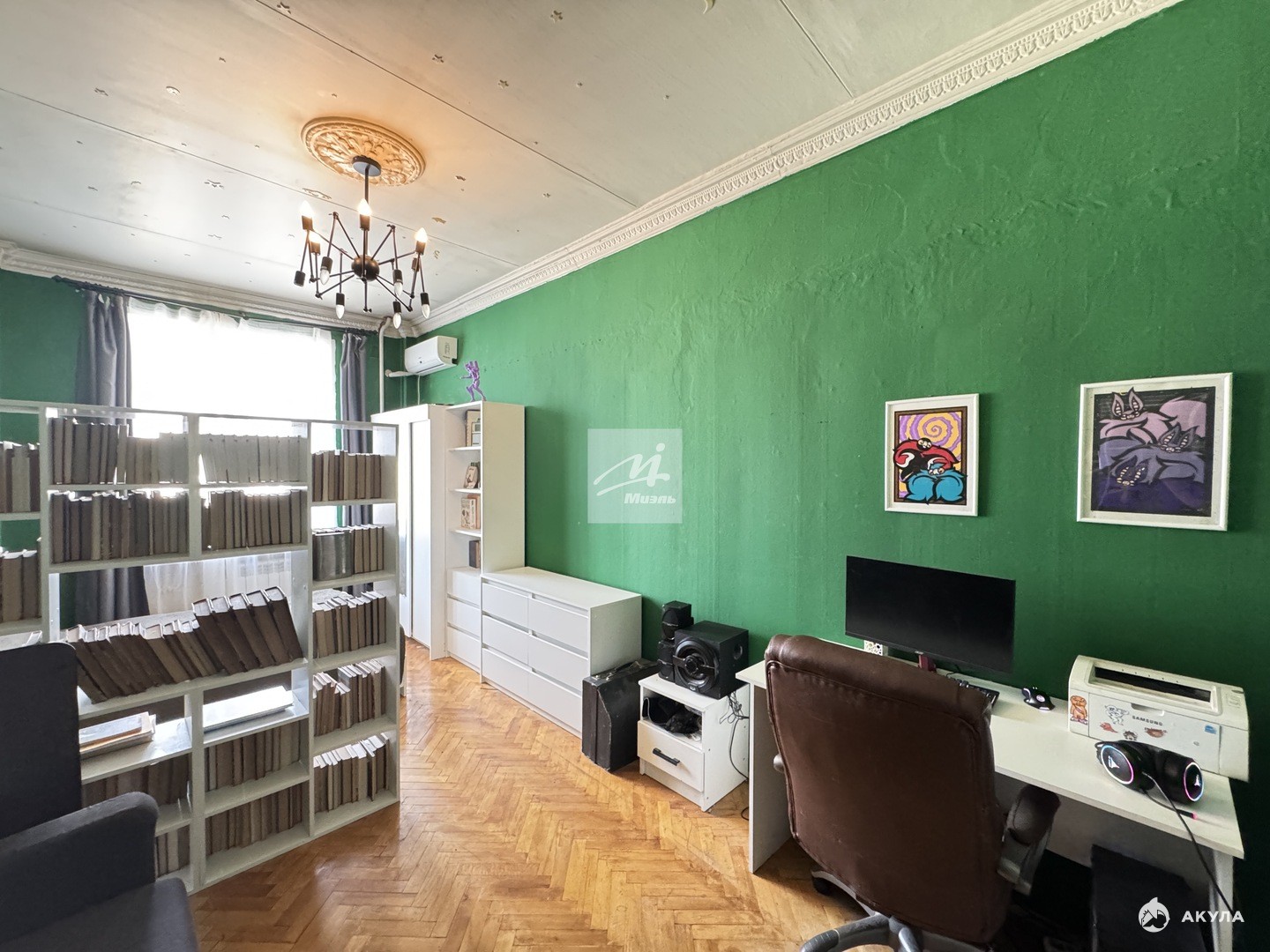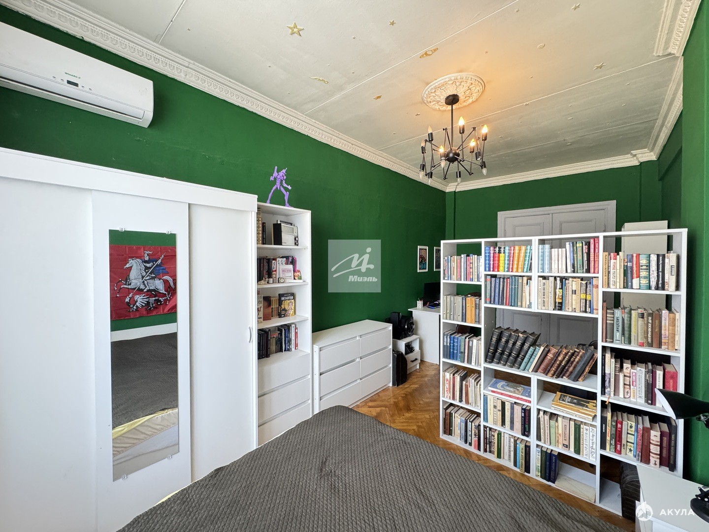Квартира расположена на 9 этаже девятиэтажного кирпичного дома 1954 года постройки. Общая площадь составляет 91, 5 кв. м, из которых 56, 4 кв. м — жилая площадь. Высота потолков — 3 метра, что создаёт дополнительное ощущение простора и свободы.