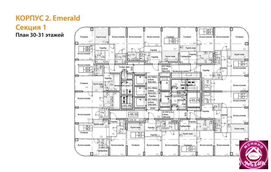 Предлагаются варианты квартир с эркерами, террасами и панорамным радиусным остеклением. Высота потолков на типовом этаже составляет 3, 1 м, на верхнем — шесть метров.