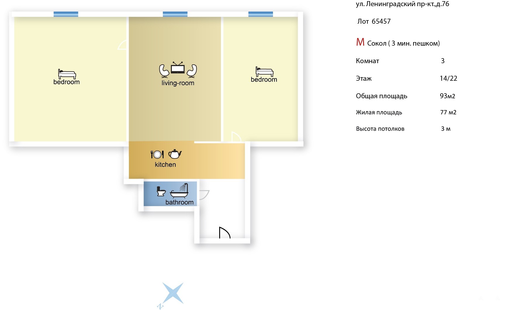 Арт. 49801241. Предлагается 3-комнатная квартира с 2-мя спальнями в известном жилом комплексе «Соколиное Гнездо». Ремонт выполнен в спокойном классическом стиле, квартира полностью меблирована и оснащена необходимой техникой в т.ч. кондиционерами и скоростным интернетом. В квартире несколько больших шкафов, много мест для хранения. Возможна аренда выделенного парковочного места на территории дома или в подземном паркинге. Рядом с домом станция метро «Сокол», торговый центр, магазины, популярные кафе и рестораны.