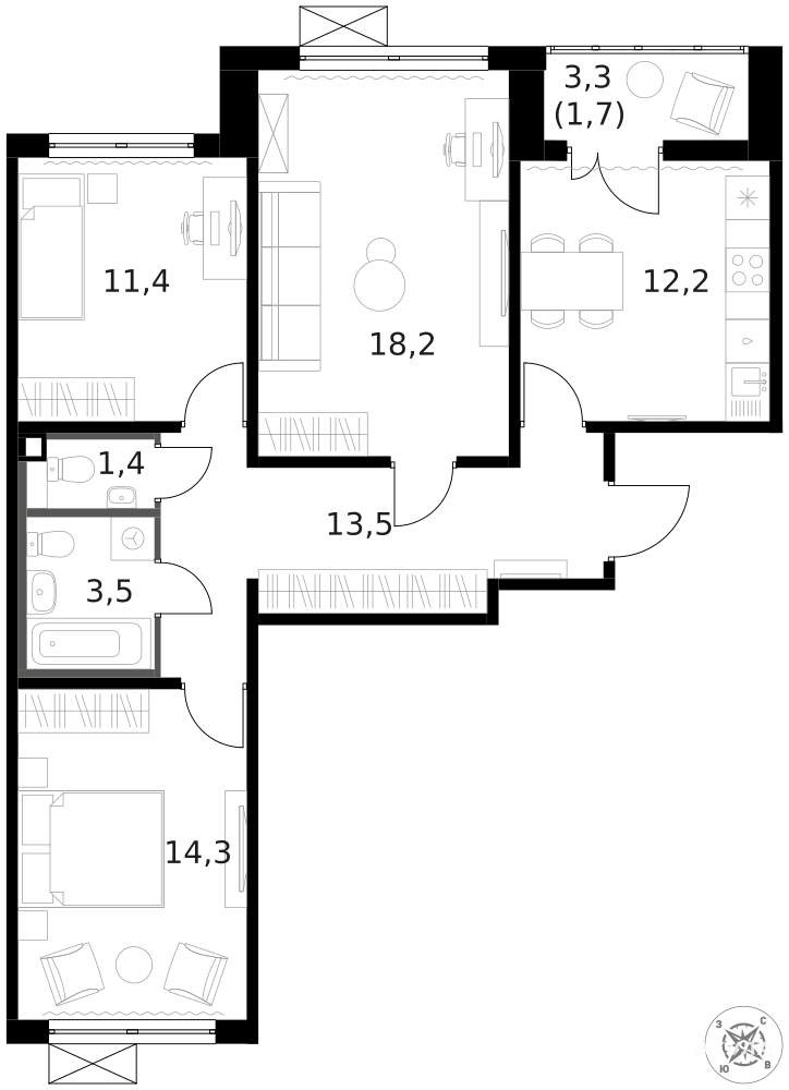 Продается 3-комн. квартира, площадью 76.4 кв.м.