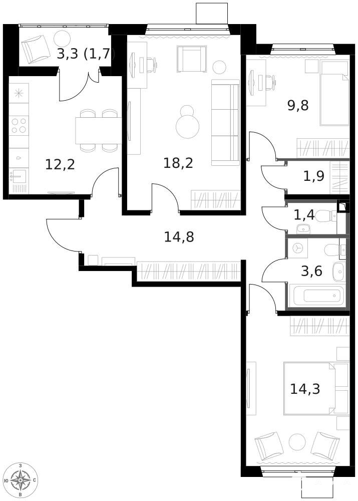 Продается 3-комн. квартира, площадью 77.8 кв.м.