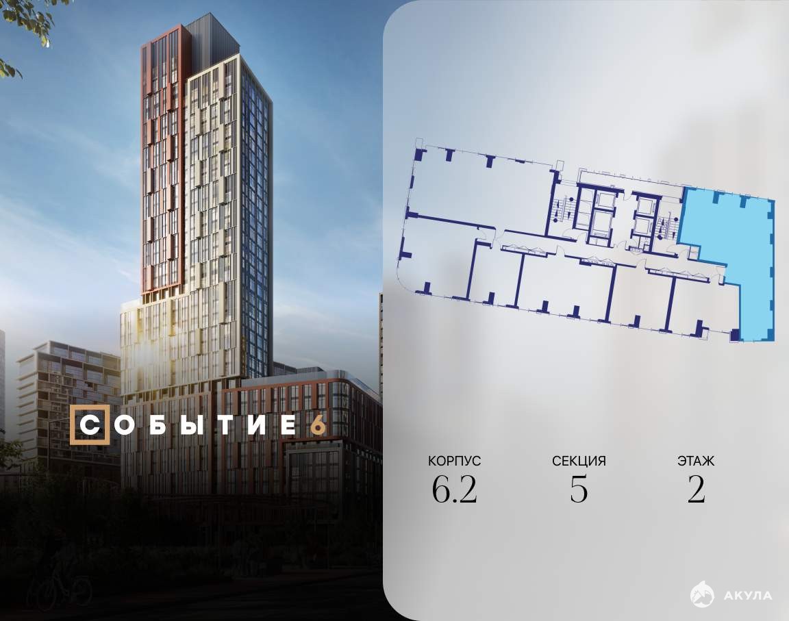 Продаётся 3-комнатная квартира от застройщика: общая площадь 108.30 м, жилая 45.20 м, кухня 30.30 м, 2-й этаж, жилой квартал «Событие-6», корпус 2 (секция 5) Срок сдачи: 1 квартал 2029 года.