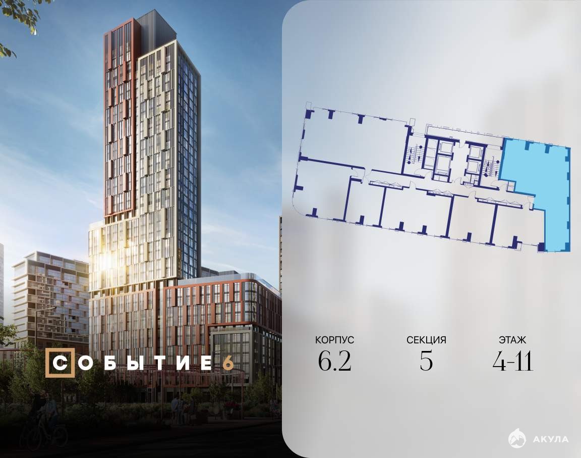 Продаётся 3-комнатная квартира от застройщика: общая площадь 107.50 м, жилая 35.20 м, кухня 30.00 м, 11-й этаж, жилой квартал «Событие-6», корпус 2 (секция 5) Срок сдачи: 1 квартал 2029 года.