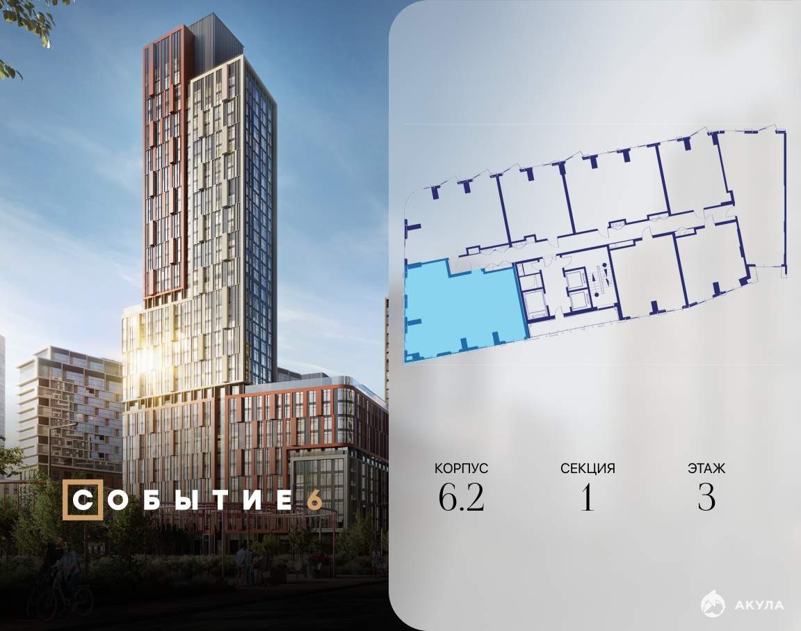 Продаётся 3-комнатная квартира от застройщика: общая площадь 99.20 м, жилая 41.70 м, кухня 23.20 м, 3-й этаж, жилой квартал «Событие-6», корпус 2 (секция 1) Срок сдачи: 1 квартал 2029 года.