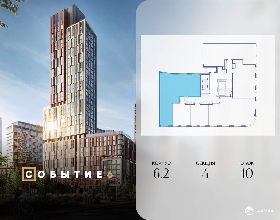 Продаётся 3-комнатная квартира от застройщика: общая площадь 108.90 м, жилая 42.40 м, кухня 23.30 м, 10-й этаж, жилой квартал «Событие-6», корпус 2 (секция 4) Срок сдачи: 1 квартал 2029 года.