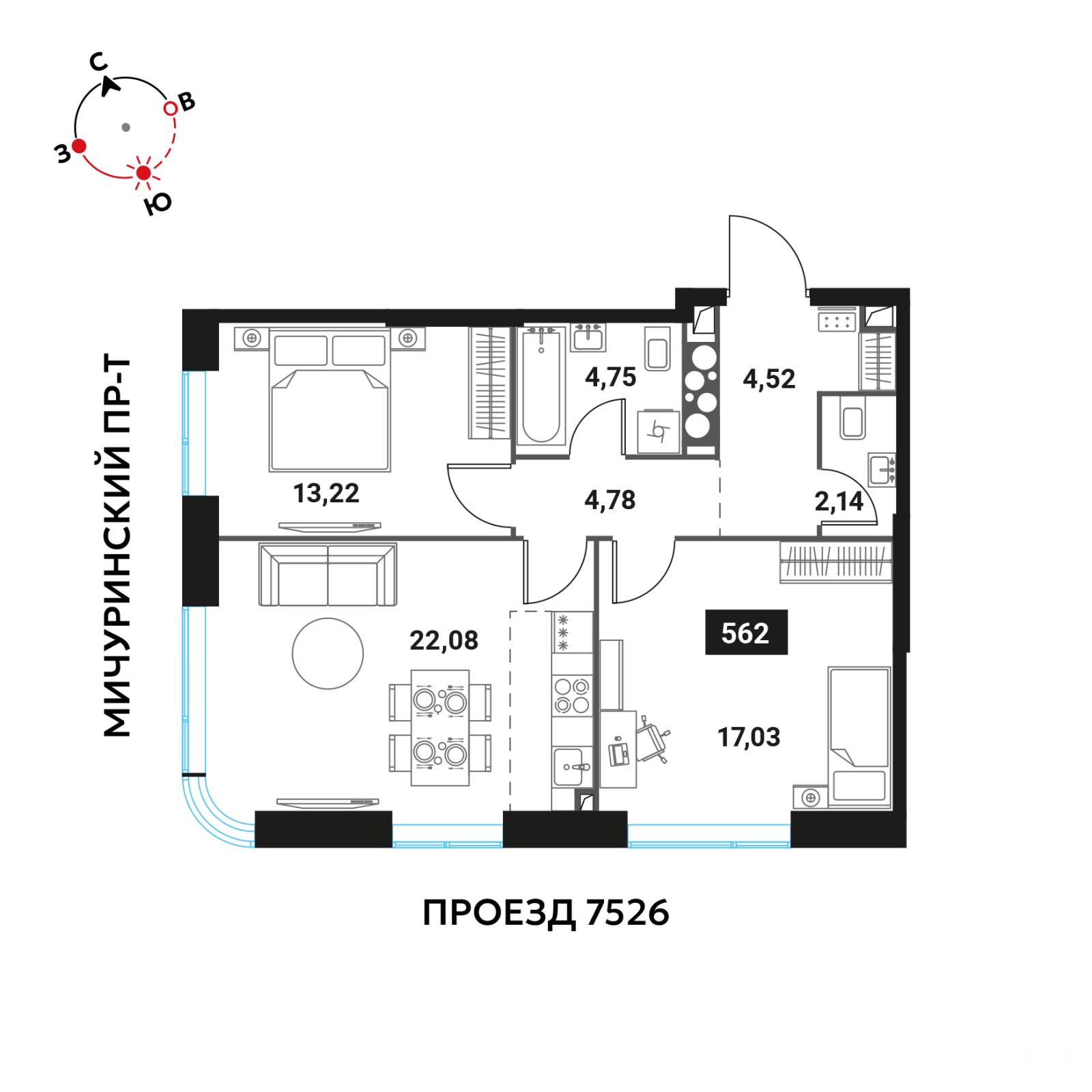 Квартира находится в корпусе Б. Дом монолитный, одноподъездный, высотой 28 этажей. На этаже 8 квартир. В подъезде 4 грузовых лифта. Выдача ключей до 31.10.2025 года.