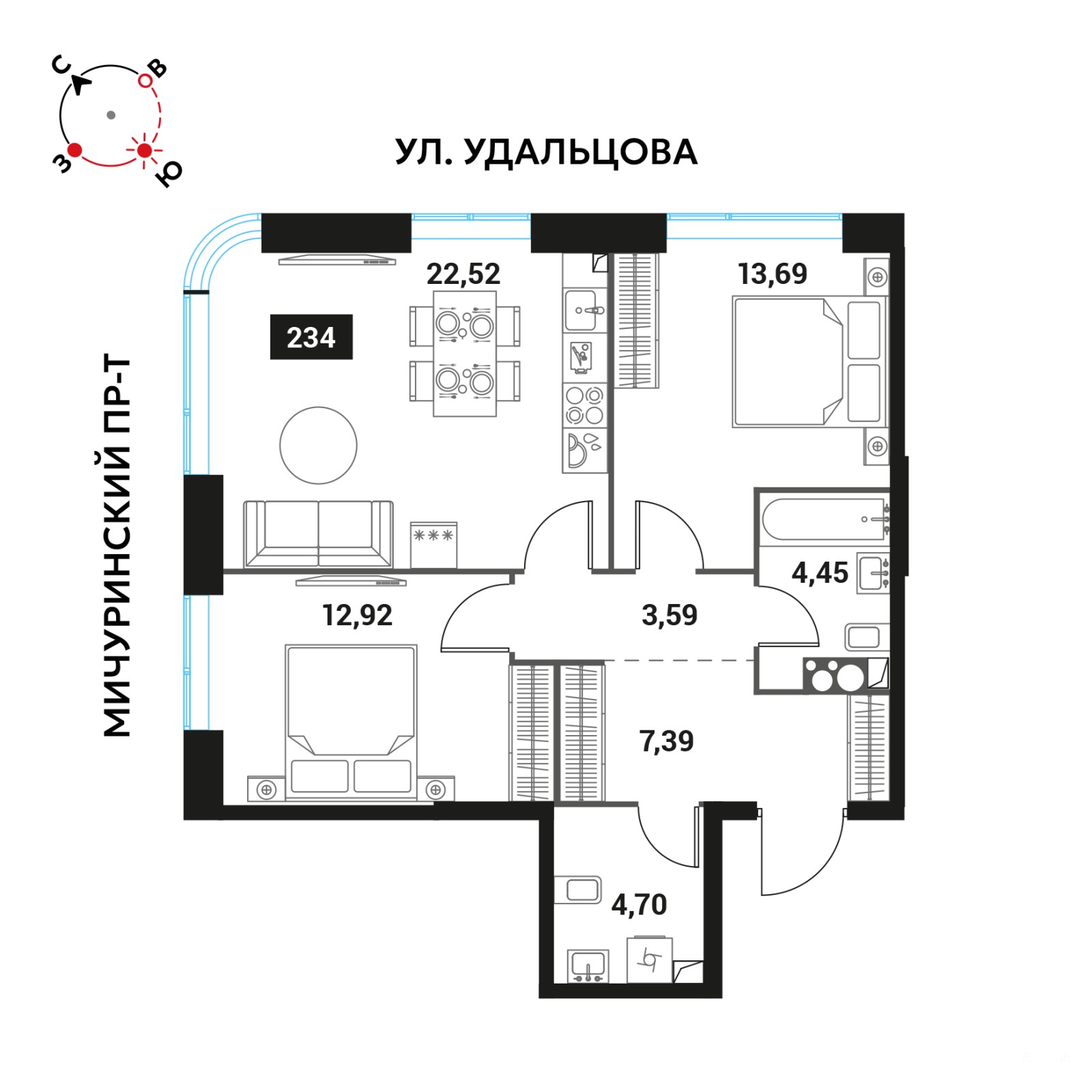- 69 м²