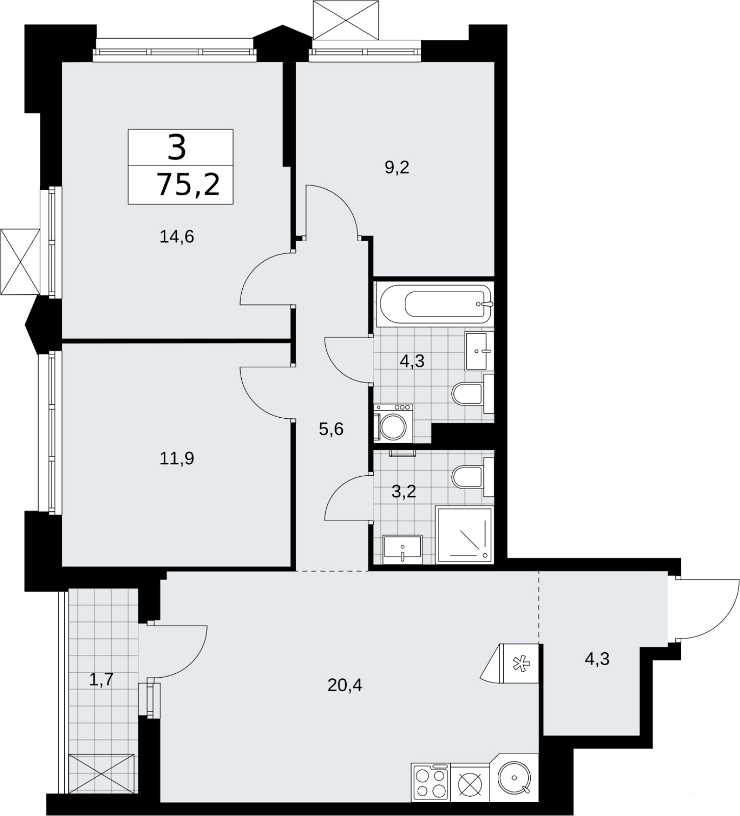 - 20.4 м²