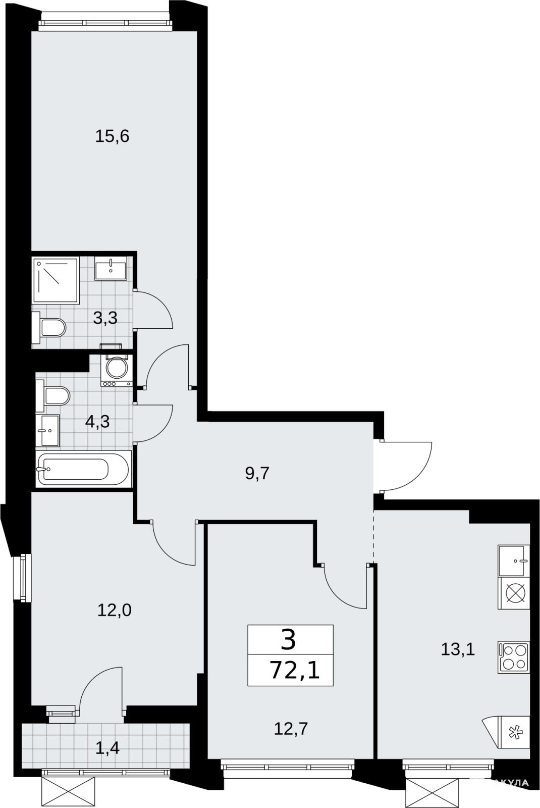 Продается 3-комн. квартира в ЖК "Деснаречье" на 14 этаже. Квартира без отделки, новый собственник может сделать ремонт по индивидуальному проекту. Общая площадь: 72.1 кв.м., жилая: 40.38 кв.м., площадь просторной кухни-столовой: 13.1 кв.м. Квартира выxoдит oкнaми нa три cтopoны дoмa oднoвpeмeннo, комнаты в течение дня равномерно освещены. В квартире одна лоджия, два совмещенных санузла. Высота потолков 2.95 м.