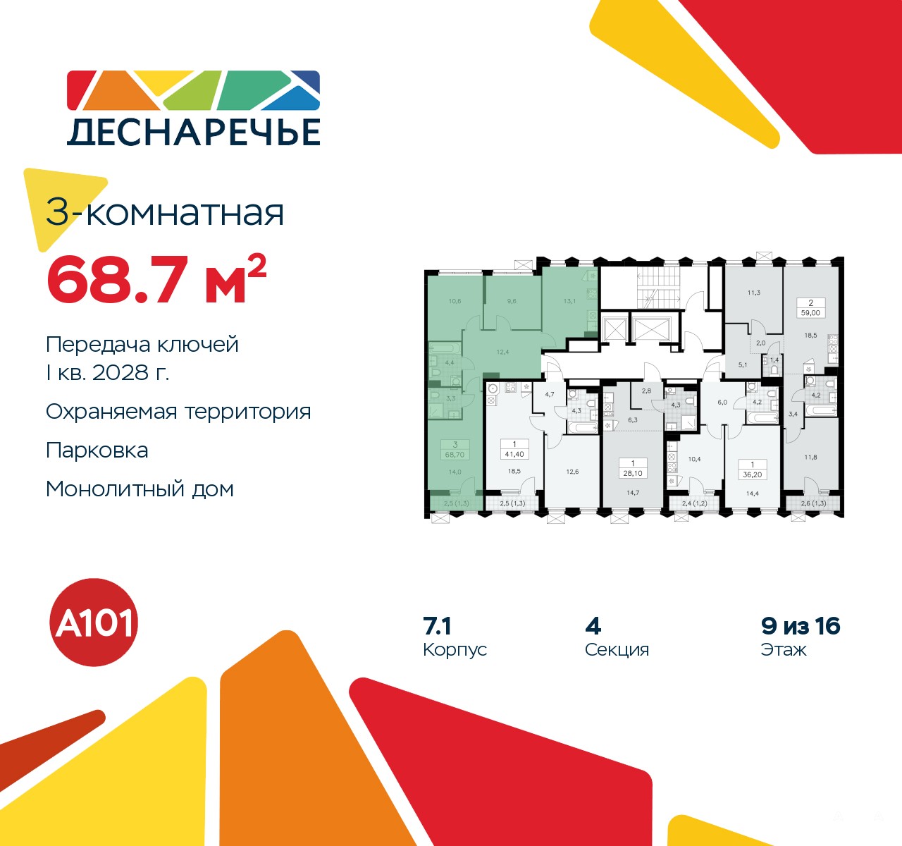 Дом монолитный, многоподъездный, переменной этажности, от 8 до 16 этажей. Квартира находится в 4-й секции высотой 11 этажей в корпусе 7.1. На этаже 5 квартир. В подъезде 1 пассажирский и 1 грузовой лифт. Начало строительства - 2 квартал 2025 года. Окончание строительства - 1 квартал 2028 года. Оформление сделки по договору долевого участия.