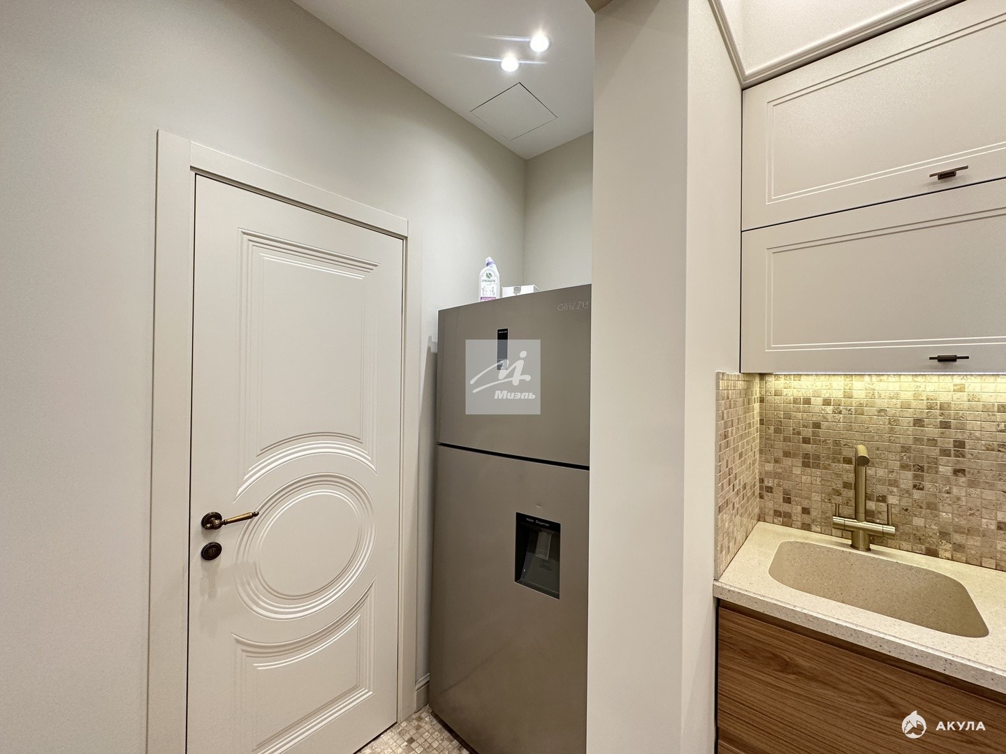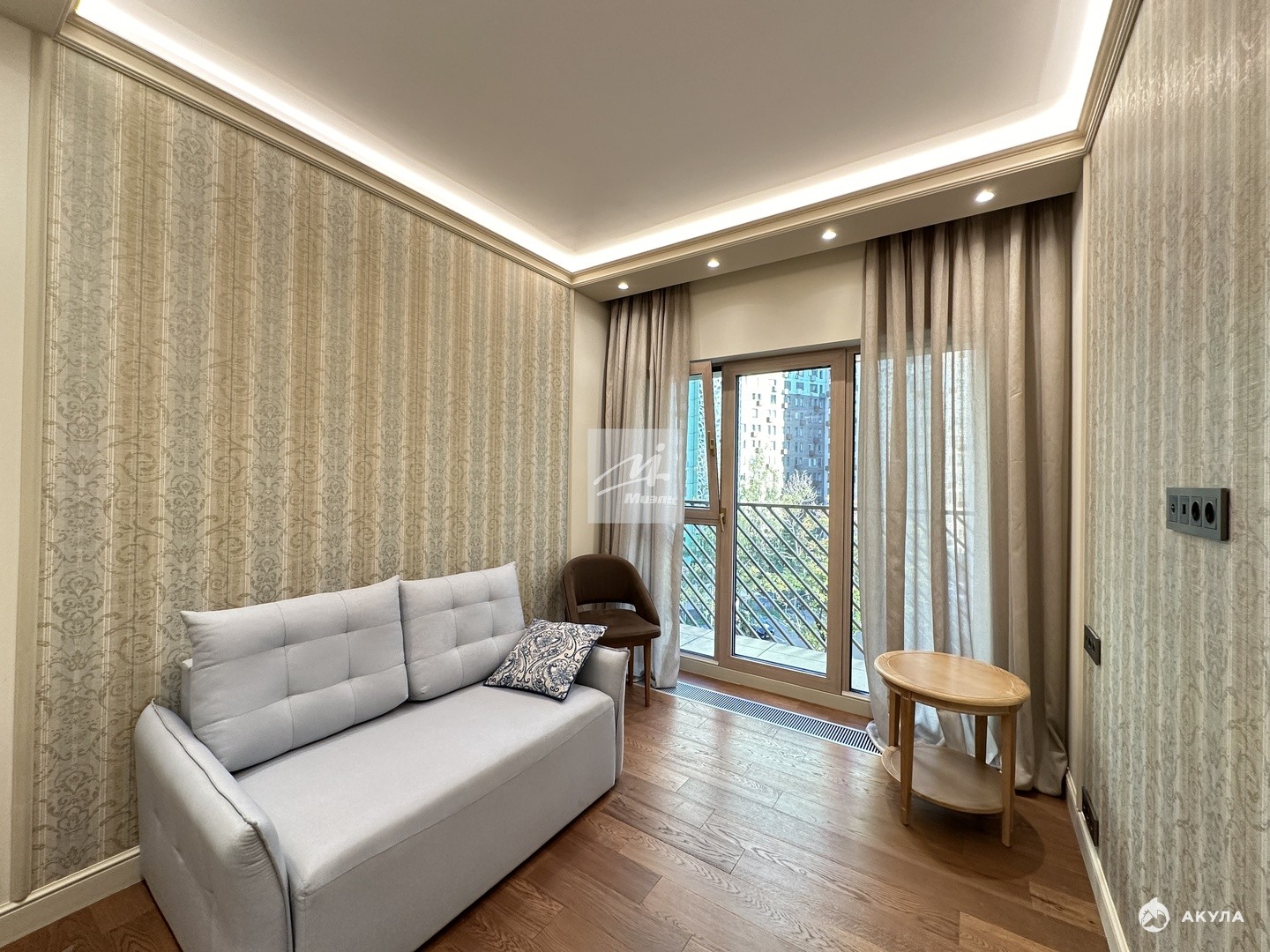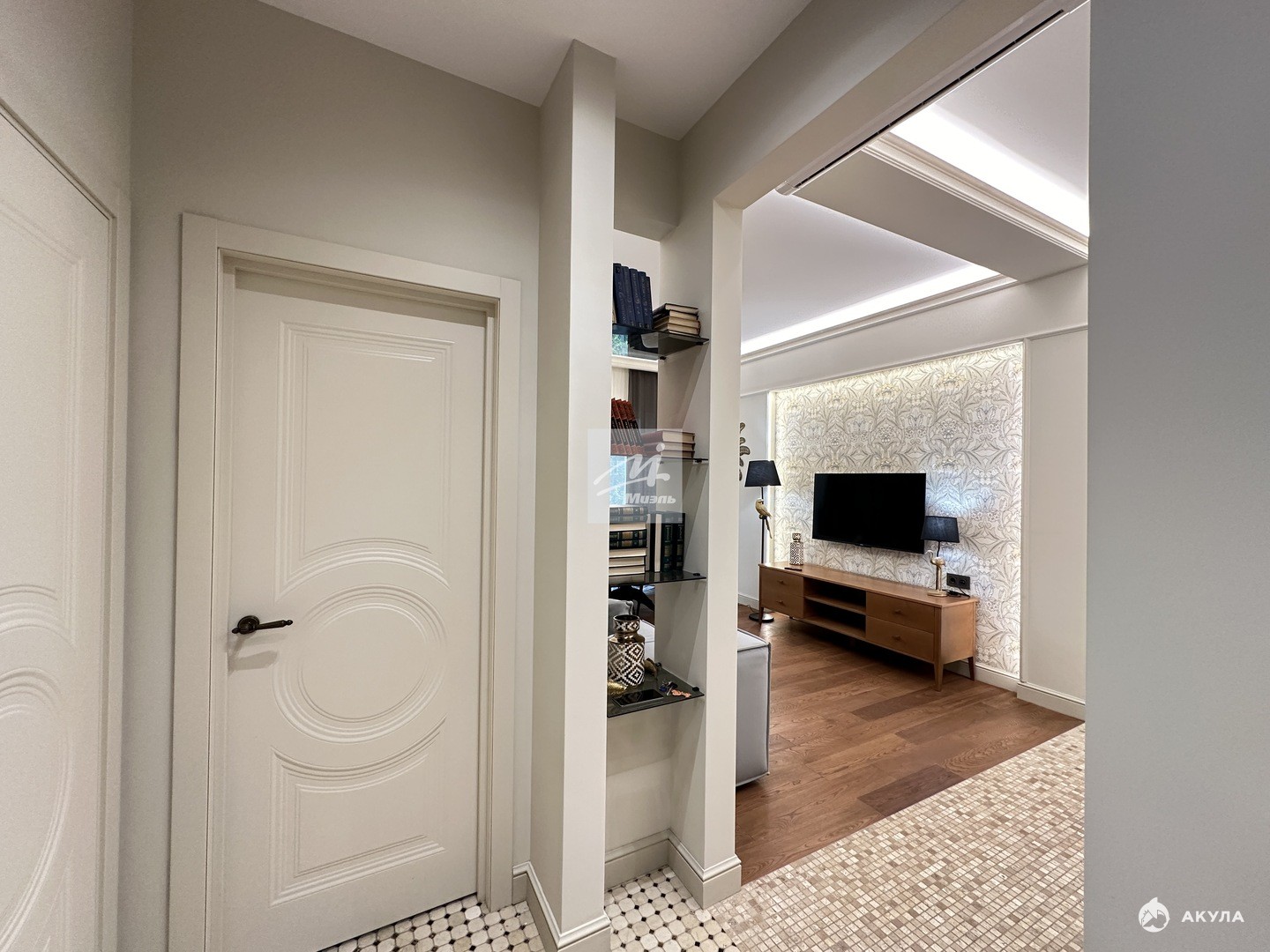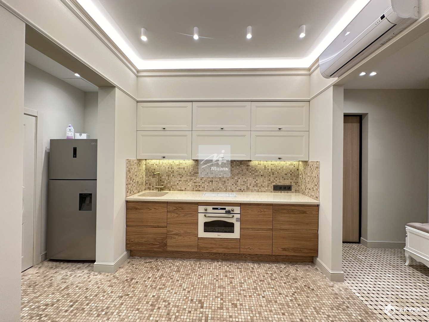 При ремонте апартаментов были использованы премиальные отделочные материалы, мебель коллекции парижский шик из шпона и эмали, кухня дуб+ эмаль с фурнитурой Блюм, в гостиной и прихожей использовано 5 сценариев освещения, которые меняют геометрию пространства.