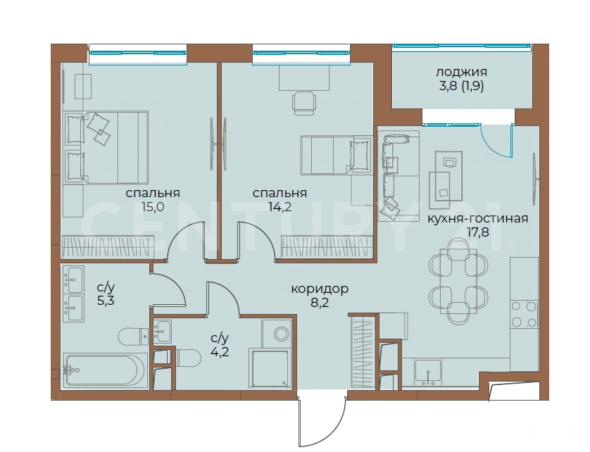 - 17.8 м²