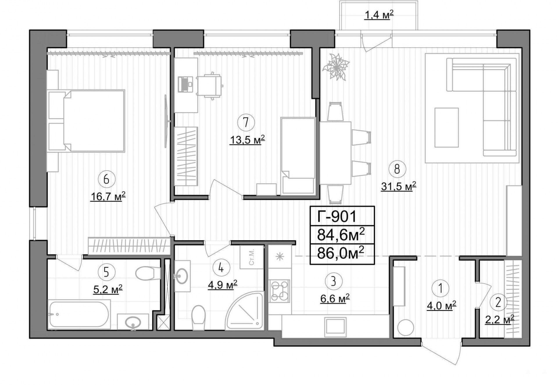 - 86 м²