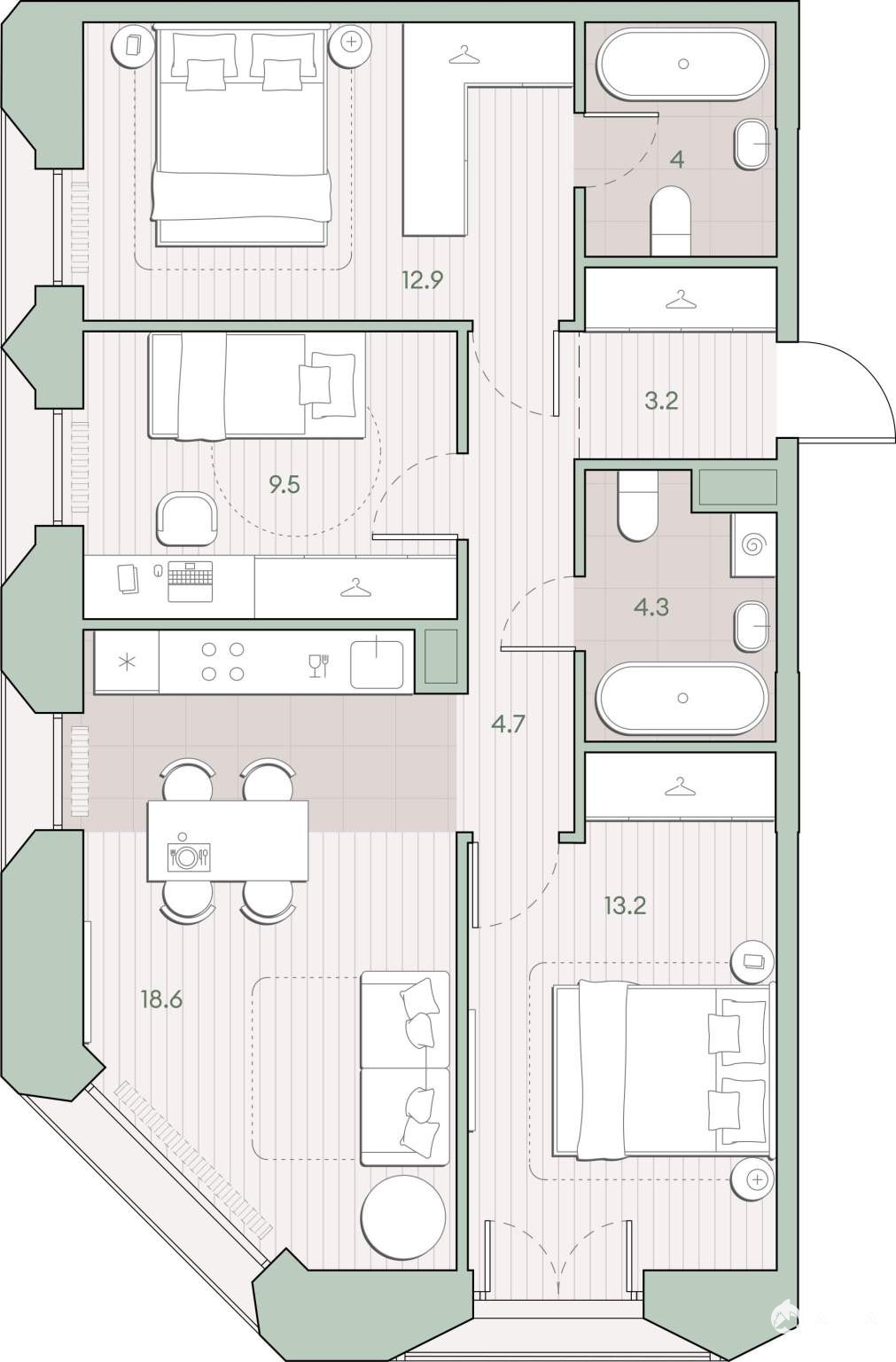 - 18.6 м²