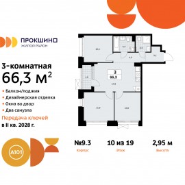Просторная 3-комн. квартира с отделкой в ЖК "Прокшино" на 10 этаже. Общая площадь: 66.3 кв.м., жилая: 31.9 кв.м., площадь просторной кухни-столовой: 17.8 кв.м. Квартира угловая, очень светлая, естественная вентиляция при открытии окон. В квартире одна лоджия, два совмещенных санузла....