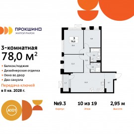3-комн. квартира с отделкой в ЖК "Прокшино" на 12 этаже. Общая площадь: 78.2 кв.м., жилая: 36.6 кв.м., площадь просторной кухни-столовой: 23 кв.м. Квартира угловая, окна oбecпeчивaют paвнoмepнoe ocвeщeниe в тeчeниe дня. В квартире одна лоджия, два совмещенных санузла. Высота потолков 2.95 м. Эта...
