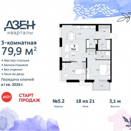 Просторная трехкомнатная квартира бизнес-класса с европланировкой в ЖК "Дзен-кварталы" на 18 этаже. Квартира без отделки, полностью готова к чистовой отделке и дальнейшему ремонту. Общая площадь: 79.9 кв.м., жилая: 44 кв.м., суммарная площадь гостиной-столовой с кухонной зоной:...