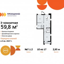 3-комн. квартира от застройщика с отделкой в ЖК "Прокшино" на 19 этаже. Общая площадь: 66.1 кв.м., жилая: 31.9 кв.м., площадь просторной кухни-столовой: 17.7 кв.м. Квартира угловая, идеально подойдет любителям тишины и панорамных видов. В квартире одна лоджия, два совмещенных санузла....