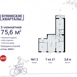 Трехкомнатная квартира от застройщика в ЖК "Бунинские кварталы" на 7 этаже. Квартира без отделки, новый собственник может сделать ремонт по своему дизайн-проекту. Общая площадь: 75.6 кв.м., жилая: 35.7 кв.м., площадь просторной кухни-столовой: 20.7 кв.м. Квартира - распашонка, очень...