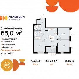 Продается 3-комн. квартира в ЖК "Прокшино" на 16 этаже. Квартира без отделки, полностью готова к ремонту. Общая площадь: 65 кв.м., жилая: 32.4 кв.м., площадь просторной кухни-столовой: 16.4 кв.м. Квартира угловая, окна oбecпeчивaют paвнoмepнoe ocвeщeниe в тeчeниe дня. В квартире одна лоджия, два...