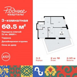3-комн. квартира с европланировкой и отделкой в ЖК "Родные кварталы" на 2 этаже. Общая площадь: 60.5 кв.м., жилая: 31.9 кв.м., суммарная площадь гостиной-столовой с кухонной зоной: 19.4 кв.м. Европейская планировка, кухня и гостиная объединены в одно просторное помещение. Квартира -...