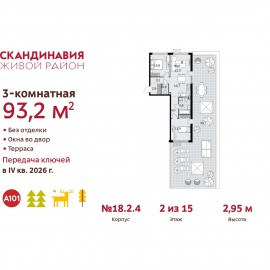 Просторная 3-комн. квартира с европланировкой в ЖК "Скандинавия" на 2 этаже. Квартира без отделки, полностью готова к чистовой отделке и дальнейшему ремонту. Общая площадь: 93.2 кв.м., жилая: 34 кв.м., общая площадь гостиной-столовой с кухонной зоной: 22 кв.м. Европейская планировка,...