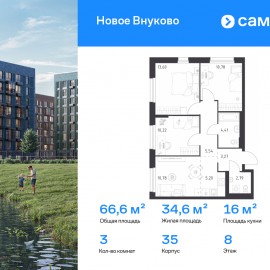 Строим кварталы для жизни с заботой о будущем. Предлагается 3-комнатная квартира комфорт-класса 66, 59 кв.м в корпусе 35 на 8 этаже, в ЖК «Новое Внуково» Квартира без отделки. Доступность опции «отделка» и возможность комплектации мебелью и декором уточняйте у...