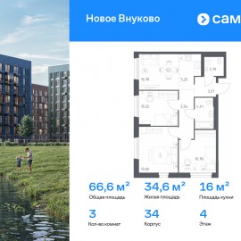 Строим кварталы для жизни с заботой о будущем. Предлагается 3-комнатная квартира комфорт-класса 66, 59 кв.м в корпусе 34 на 4 этаже, в ЖК «Новое Внуково» Квартира с чистовой отделкой. Доступность дополнительных опций уточняйте у застройщика. Приобрести квартиру возможно по...