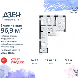Продаётся 3-комн. квартира от застройщика: общая площадь 97.60 м, жилая 37.60 м, кухня 32.10 м, 4-й этаж, жилой квартал «Остров 12», корпус 4 (секция 1) . Срок сдачи: 1 квартал 2029 года. 3 совмещенных санузла. В жилой зоне 2 больших окна на одну сторону, хорошая инсоляция. Позвоните сейчас и...