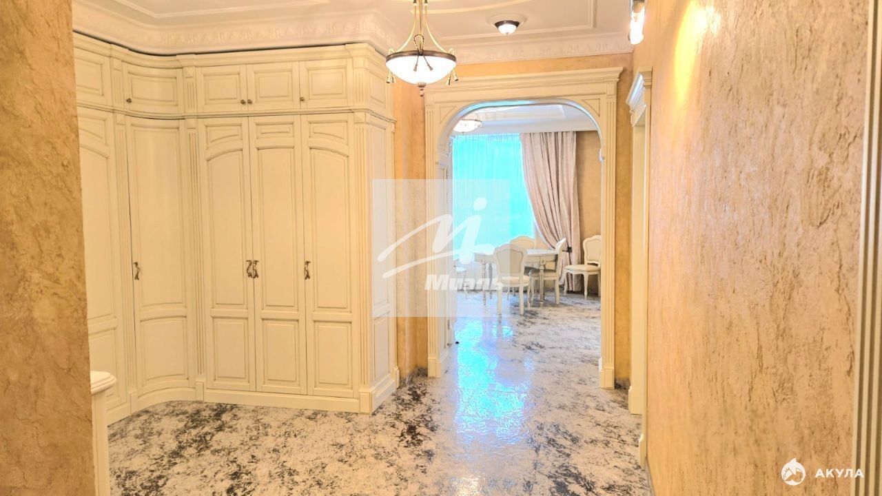 Квартира расположена на 7 этаже 36-этажного монолитного дома, построенного в 2011 году. Общая площадь составляет 103 кв. м, из которых 56 кв. м — жилая площадь, 18 кв. м — кухня. В квартире выполнен дизайнерский ремонт, комнаты изолированы, окна выходят на улицу.