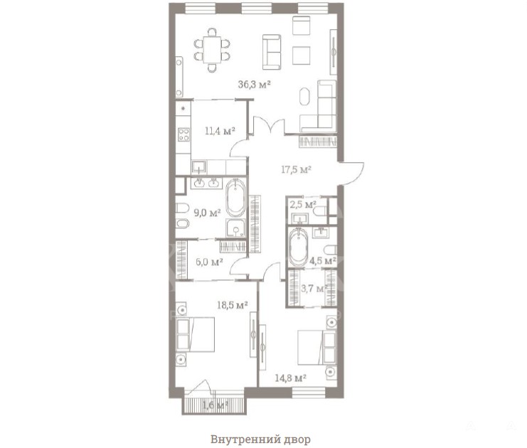 Квартира в премиальном проекте "Полянка, 44" в историческом центре Москвы.