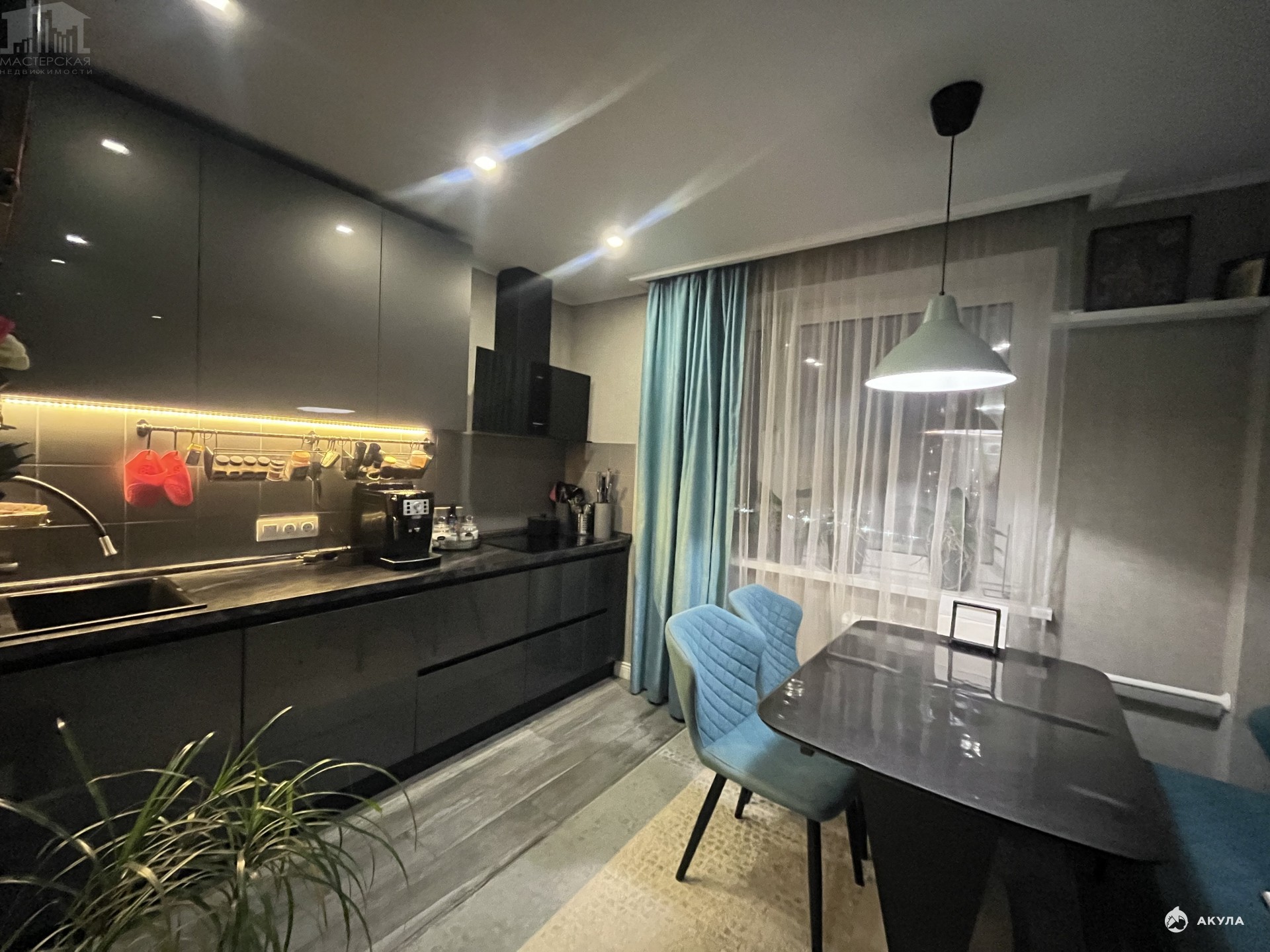 Кухня современная, оборудована встроенной качественной техникой и мебелью: две сплит-системы Zanussi и Electrolux (электроплита, духовка, микроволновка), два холодильника (Kuppersberg, korting) , посудомоечная машина Electrolux. Половое покрытие на кухне и в санузлах - керамогранит, комнаты- качественный ламинат.