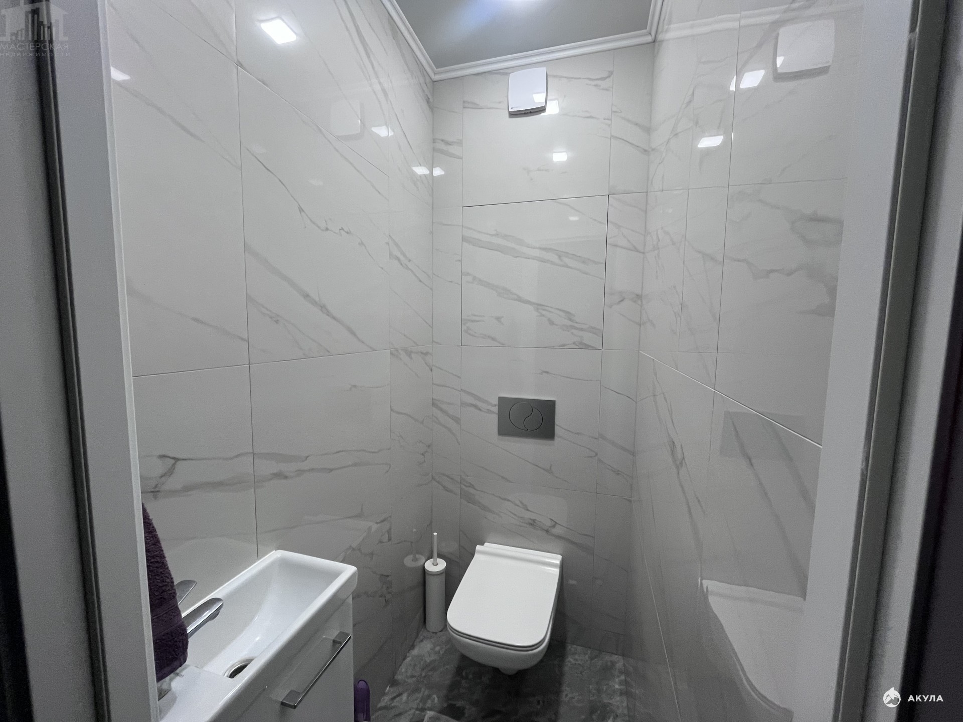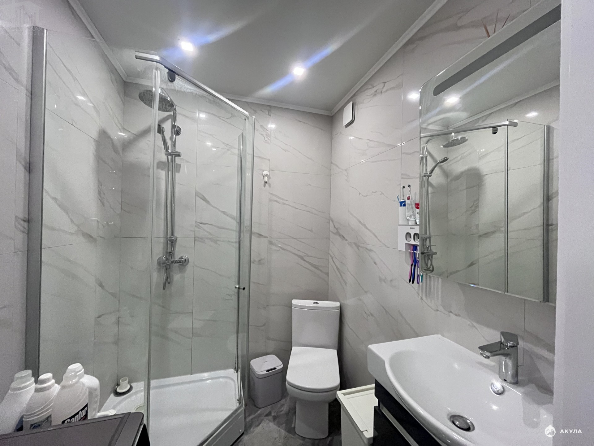 Натяжные матовые потолки в квартире, два санузла: взрослый и детский.