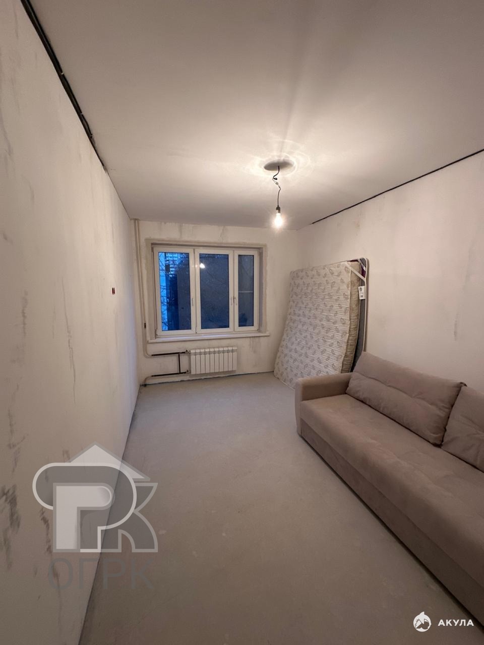 В квартире проведены следующие работы: выровнены стены, залит пол, заменена электрическая проводка, установлены новые радиаторы обогрева центрального отопления, установлен газовый счетчик. Планировка квартиры включает один отдельный санузел, кладовая и два остекленных балкон.