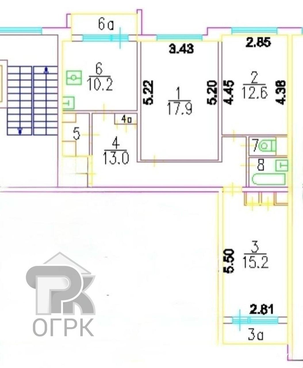 Квартира площадью 73, 8 кв. м, планировка «распашонка" обеспечивает удобное зонирование: три отдельные комнаты (17, 9 кв. м, 12, 6 кв. м и 15, 2 кв. м), высота потолков 2, 68 и большие окна создают ощущение простора. Кухня 10 кв. м.
