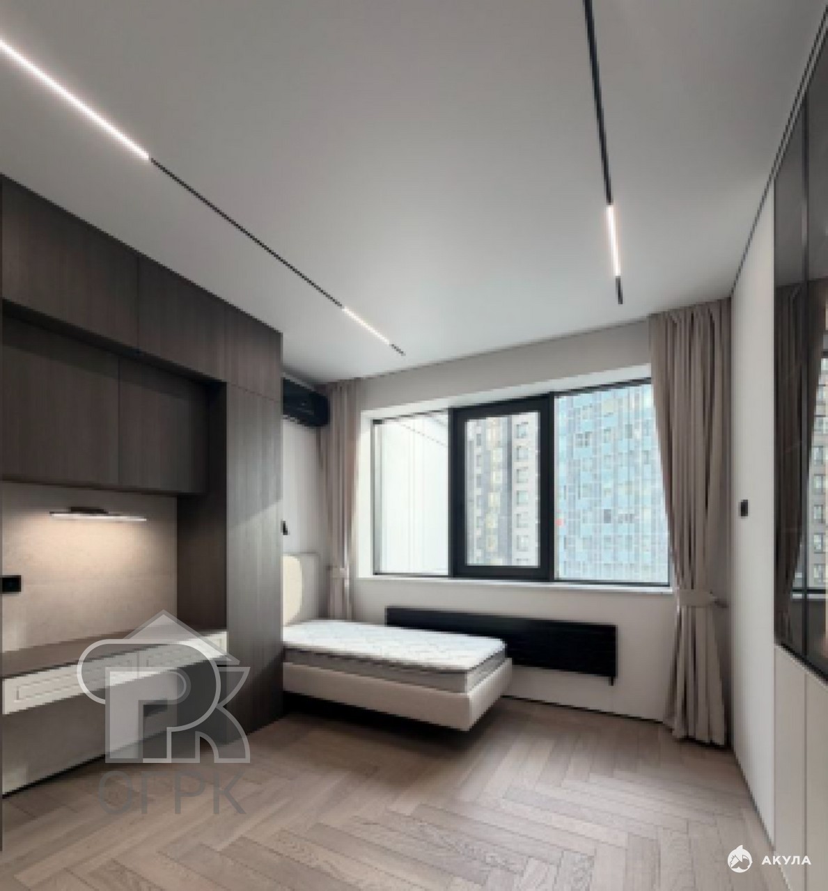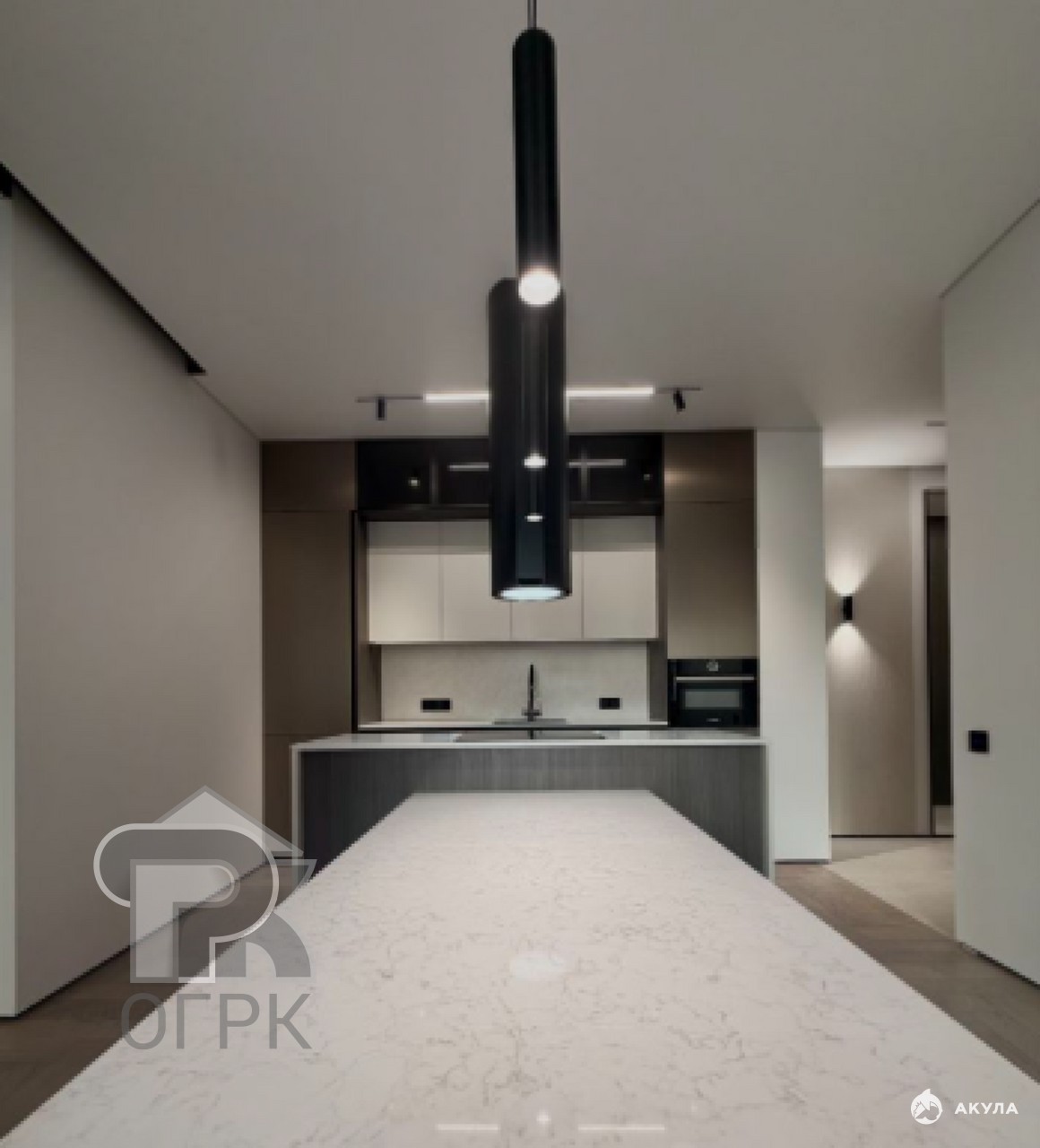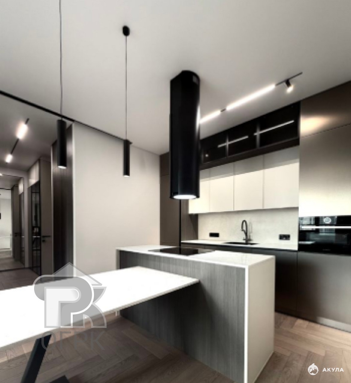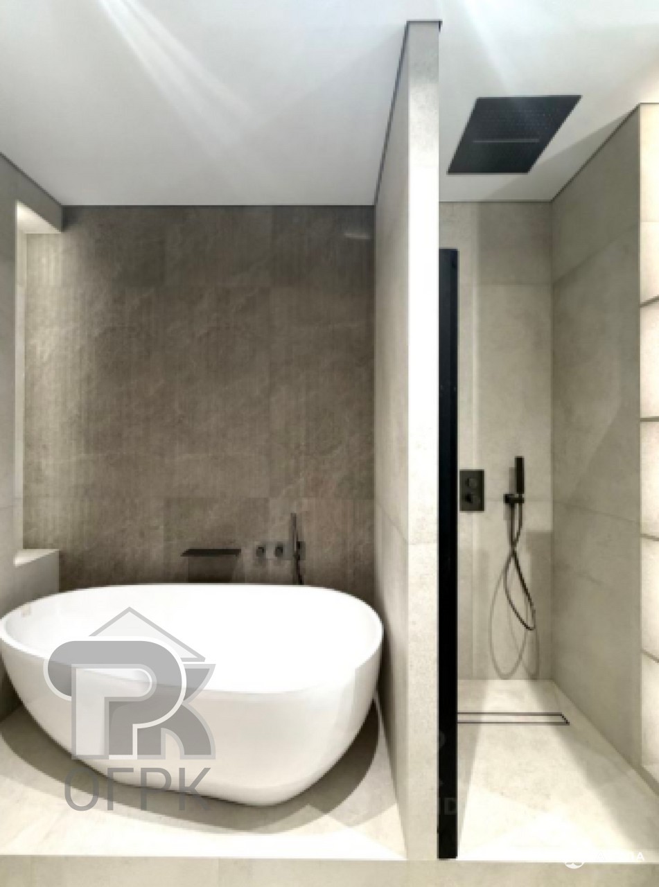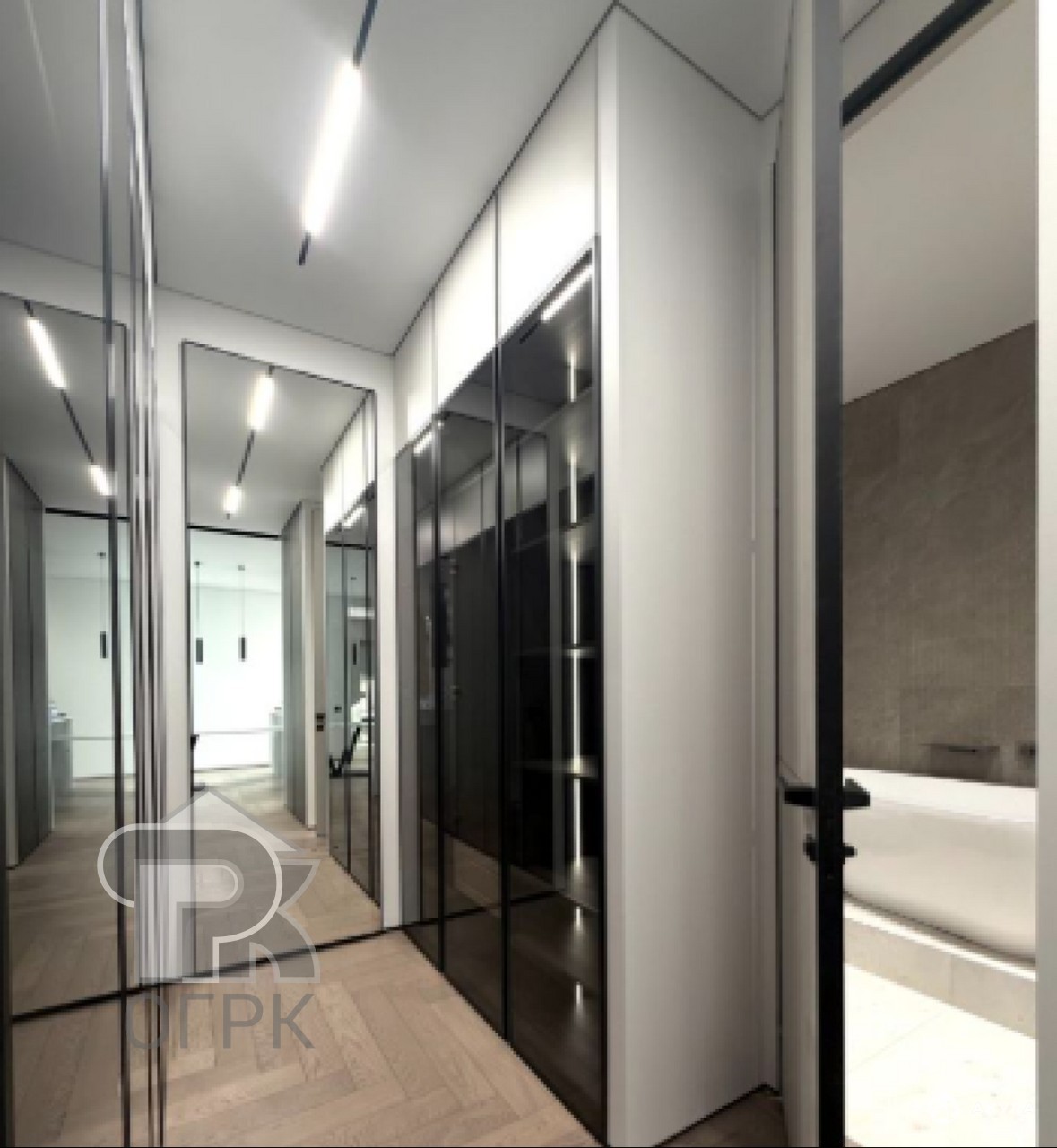 Интерьер поражает продуманностью и технологичностью: инженерная доска прайм селекции на полу, парящие потолки с теневой системой, скрытые двери высотой 2, 8 метра и интегрированная магнитная система освещения. Кухня-гостиная с островом и столешницей из камня оснащена техникой Liebherr и Bosch. В обеих ванных комнатах установлена премиальная сантехника Grohe, Villeroy & Boch и теплые полы. Особого внимания заслуживает организация пространства: 16 встроенных шкафов с фурнитурой Blum, гардеробная и парящие кровати со скрытой подсветкой создают невероятный объем и порядок.