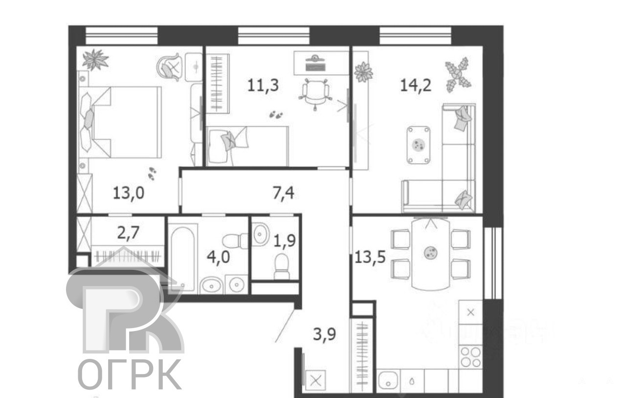 Квартира имеет рациональную планировку с тремя изолированными комнатами площадью 13, 11 и 14 квадратных метров, что идеально подходит для семьи с детьми. Отдельная кухня в 13.5 м² станет центром притяжения для домашних обедов и встреч с друзьями. Окна выходят на две стороны, обеспечивая и уютный дворовой вид, и оживленную городскую перспективу. Сдача дома запланирована на 2026 год, что позволяет новому владельцу выполнить отделку в соответствии с личными предпочтениями, выбрав материалы и планировочные решения без оглядки на чужие ремонты.