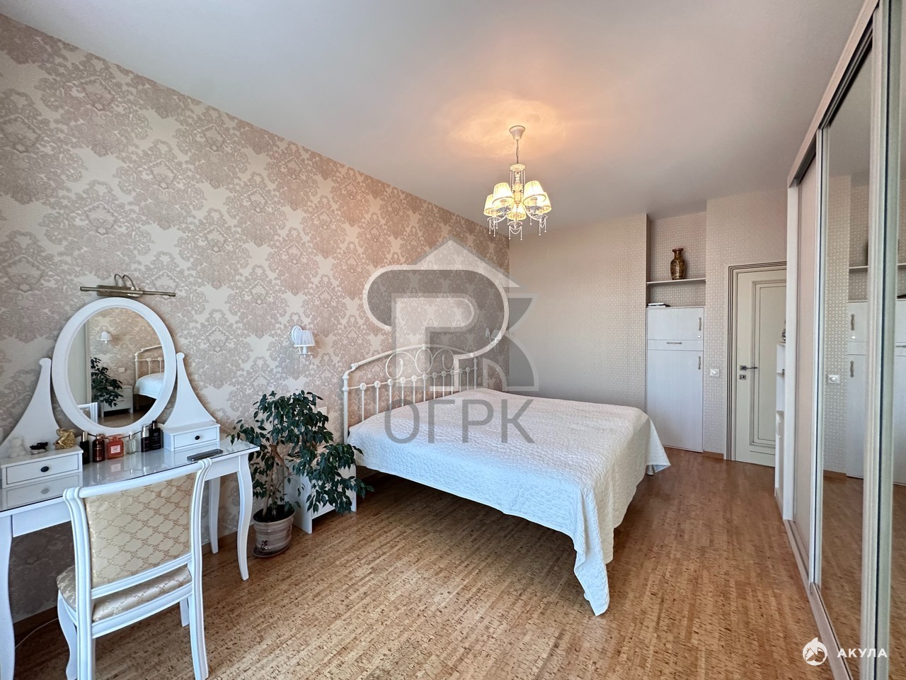 В квартире выполнен качественный ремонт с дополнительной шумоизоляцией, делали для себя. Установлены кондиционеры, работающие на охлаждение и обогрев, водонагреватель, теплые полы. Два балкона в квартире. Окна квартиры смотрят на две стороны света.