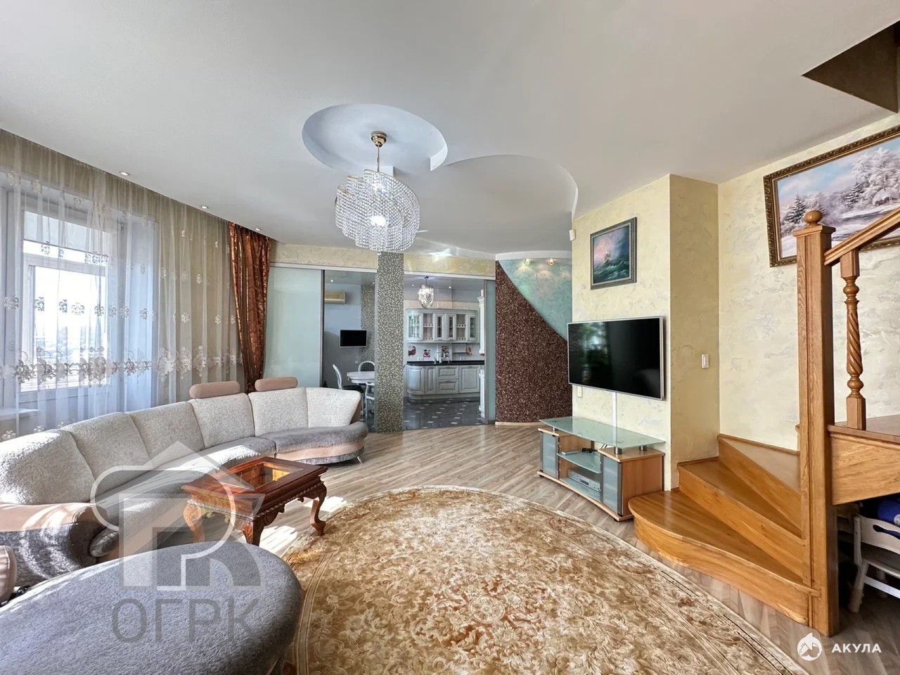 Светлая и просторная квартира в монолитно-кирпичном доме 2000 года постройки. Высота потолков — более 3 метров, что создаёт ощущение воздуха и объёма. Квартира выполнена в современном формате с объединённым пространством кухни и гостиной.