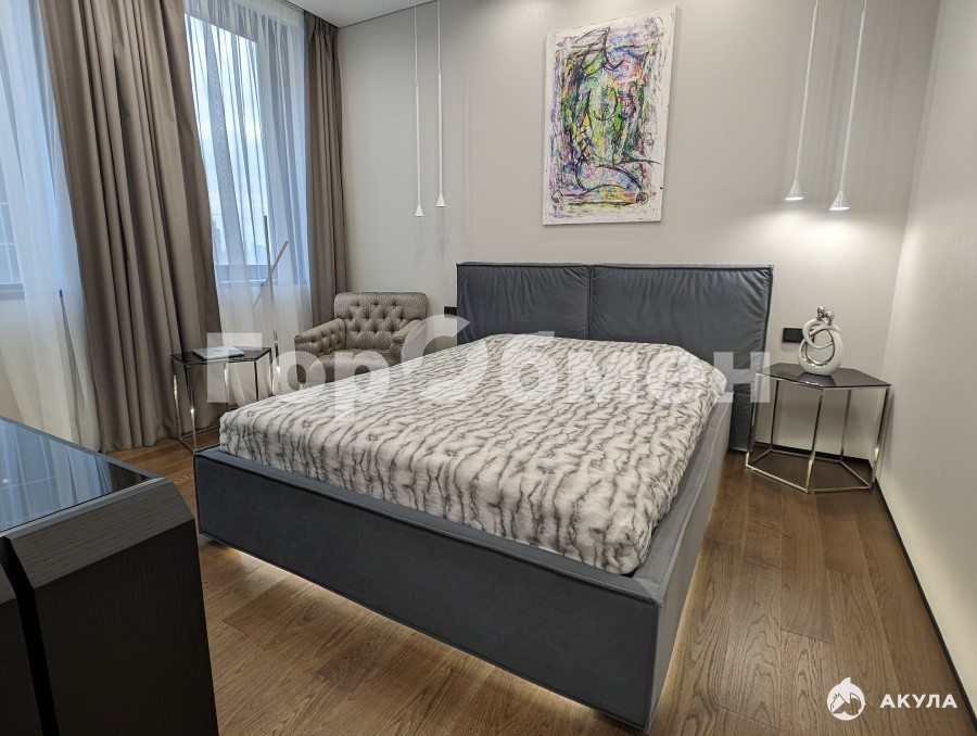 Дорогой высококачественный ремонт выполнен по дизайн-проекту. Использованы премиальные материалы отделки. Декоративная штукатурка, натуральный паркет, многоуровневый потолок с LED-подсветкой, двери скрытого монтажа, теневой плинтус. Интерьерный свет с вариантами освещения. Защита от протечки, многоуровневая система очистки воды, Встроенная кухонная бытовая техника. Комплект стиральной и сушильной машины. Итальянская гардеробная система и встроенные гардеробные шкафы.